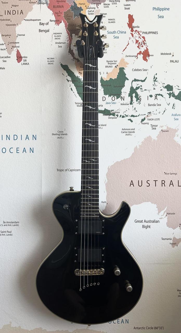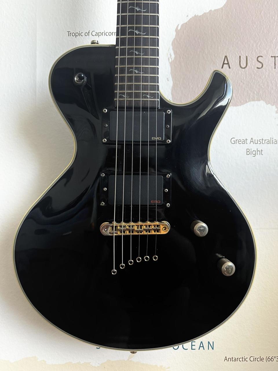 Tělo: Mahagon Krk: Mahagon Hmatník: Eben Snímače: EMG 85, EMG 89 (lze rozepnout na single) Pražce: 24 Jumbo Nultý pražec: Graphtech NuBone Menzura: 24,75" Kobyla: Tune-O-Matic, struny skrz tělo Ladicí mechaniky: Grover Odběr v Praze, nebo můžu poslat