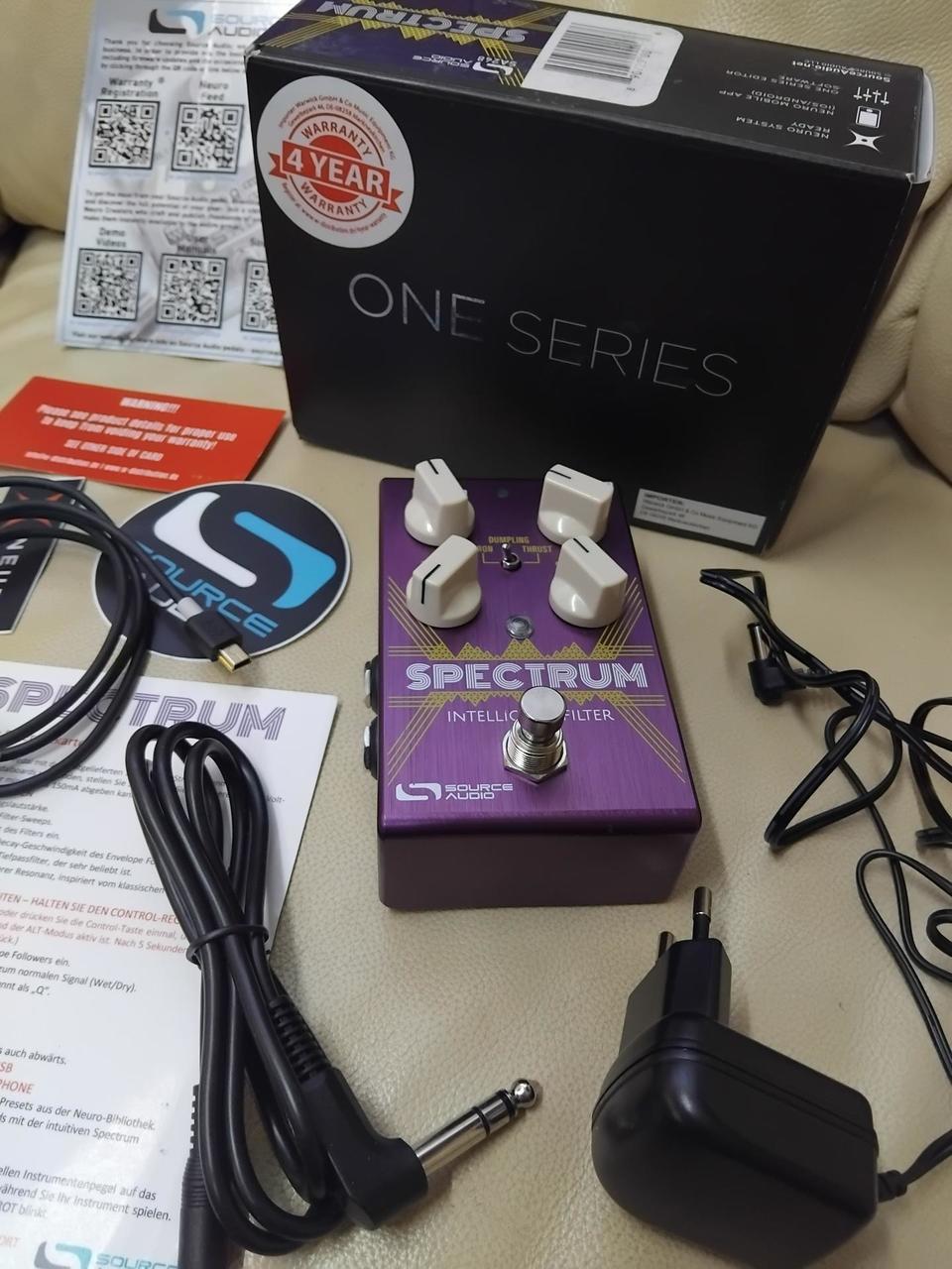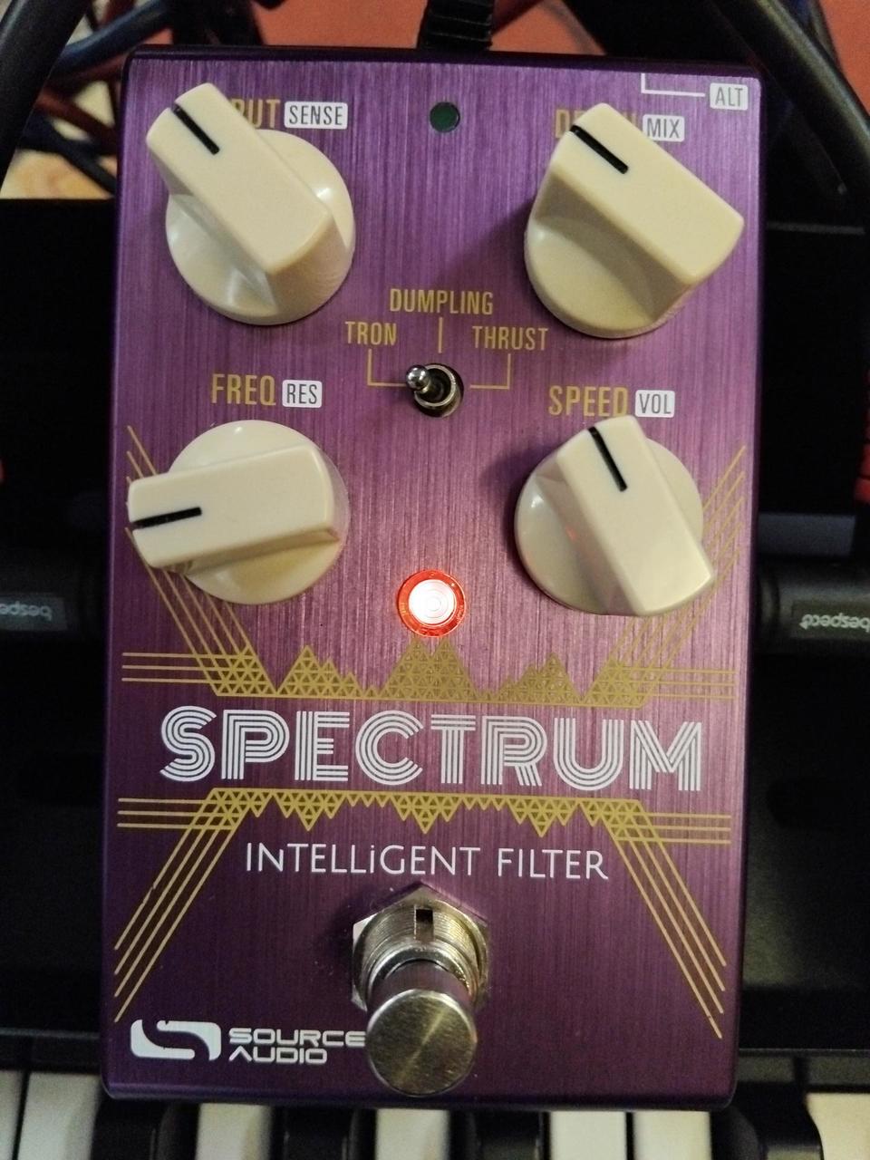 Pedálový efekt pre gitaru, basgitaru a synth- stereo filter - spoločnosti Source Audio. Spectrum Intelligent Filter je navrhnutý ako jednoduché plug-and-play zariadenie. Prináša široké spektrum efektov a charakterov zvuku, ktoré sú inšpirované najznámejšími pedálmi. K dispozícii sú synth zvuky založené na distorted octave a envelope phaser. Tlačidlo ALT a ovládací panel so 4 ovládacími prvkami ponúka prístup k ôsmim rôznym parametrom. Pomocou ovládacích prvkov Input Gain, Sensitivity a Speed umožňuje optimálne nastavenie. Frequency, Resonance, Depth a Mix poskytujú jemné nastavenie farby a charakteru efektu – filter. Spectrum Intelligent Filter predstavuje najkomplexnejší dostupný pedálový filter efekt na trhu. K dipozícii bezplatný editačný software Neuro Editor Pedál ponúka širokú škálu možností zvukového dizajnu 6 zabudovaných predvolieb 128 predvolených presetov s MIDI ovládaním Kompatibilné s MIDI prostredníctvom Source Audio Neuro Hub 5 rôznych filter efektov Dual filter efekty 11 rôznych envelope followers 14 rôznych LFO waveforiem a 13 rôznych distortion efektov Universal bypass True Bypass: analog-buffered a relay-switched Ovládacie prvky: Input (Sense), Depth (Mix), Freq (Res), Speed (Vol) Prepínač pre 6 zabudovaných predvolieb Ovládacie tlačidlo ALT aktivuje sekundárnu funkciu potenciometrov Bypass footswitch LED kontrolka Konštrukcia vyrobená z eloxovaného hliníka Vstupy a výstupy: 6,3 mm stereo jack konektory pre rôzne možnosti smerovania signálu 3,5 mm TRRS jack pre expression control signal prostredníctvom Hot Hand 3, alebo expression pedálu v reálnom čase Mini USB port pre pripojenie k PC (kompatibilný s Windows a Mac) Napájanie prostredníctvom dodávaného napájacieho zdroja 9 V DC Spotreba energie: 165 mA Rozmer: 114 x 70 x 51 mm Farba: Purple