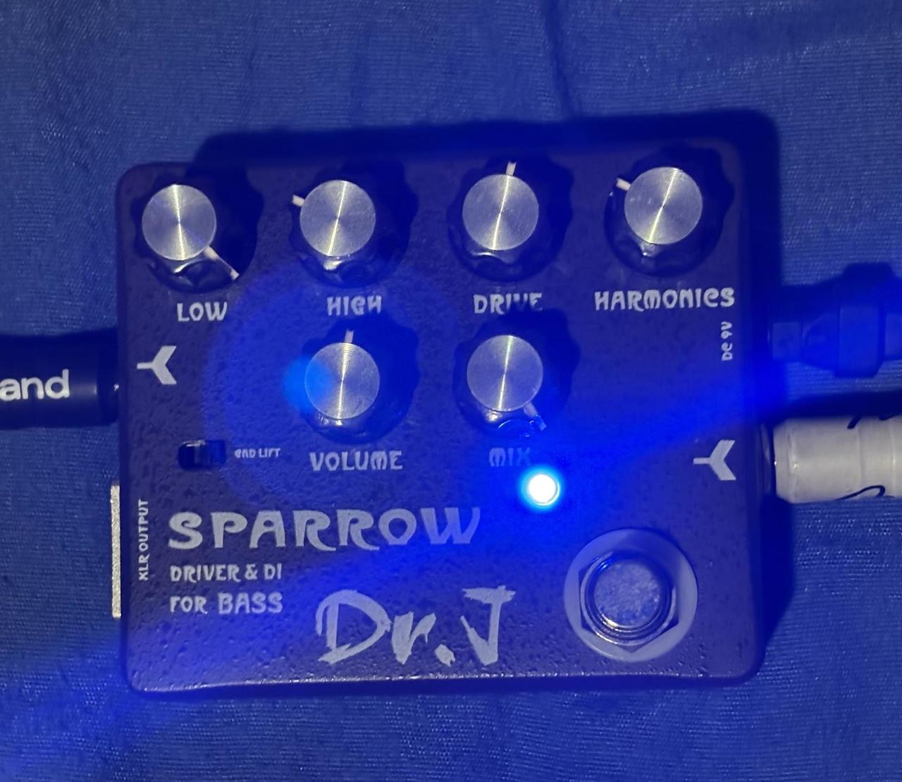 Ja som ho využíval na zosilnenie piezo signálu z kontrabasu. Okrem známej funkcie overdrive na rozšírenie dynamického rozsahu je veľmi užitočný knob harmonics ktorý rozširuje bohatosť tónu. Okrem zvukovej korekcie má integrovaný plnohodnotný DI box s XLR výstupom. Užitičný je ground swich, ktorým sa dá eliminovať brum v každej elektrickej sieti. Parametre a info výrobcu: Dr. J Pedals D53 Sparrow Driver&DI for Bass Efektový pedál typu Overdrive a DI Box určený pre basgitaru. Sparrow ponúka dvojicu zariadení v jednom kompaktnom pedále. K dispozícii je Overdrive efekt s ekvalizérom spojený s DI Boxom. Predný panel pedálu je vybavený jednoduchým a intuitívnym ovládaním s 6 potenciometrami a jedným prepínačom pre nastavenie zvuku. Volume nastavuje celkovú hlasitosť zvuku, Drive úroveň skreslenia, ovládače Low a High slúžia pre nastavenie odozvy vo výškovom a basovom pásme, Mix slúži na miešanie čistého a skresleného signálu a Harmonies harmonicky obohacuje váš tón. K dispozícii je aj dvojpolohový prepínač, ktorý slúži pre funkciu Ground Lift. Pedál je možné napájať pomocou 9V batérie alebo adaptéru.