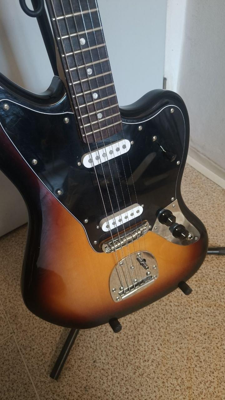 Prodám kytaru typu Jaguar. Koupil jsem si jí před rokem, má dobrý stav, bez kosmetických vad. Pražce neškrábe ruku, menzura je naladěná. Má měřítko 24" takže bude vhodná a pro děti.