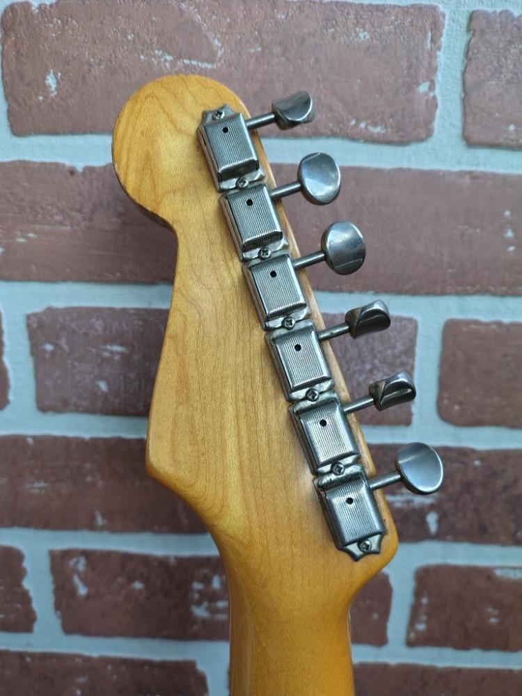 Kytara se krásnými středy a medovými výškami, nic plechového ani uječeného. Kytara má originální pražce a je jich dost. Hlavně má velmi ceněné USA snímače "black bobbin", které mají na trhu značnou hodnotu (mrkněte) Cena je nižší z důvodu přelakovaného těla, které v minulosti někdo provedl z fiesta red na black. Teoreticky by bylo možné, kdyby mě někdo ukecal a na snímačích mu nezáleželo, prodat i bez nich. Cena by byla podstatně jiná. Samozřejmě doporučuji koupit tak, jak je a nespekulovat, byla by to asi škoda.