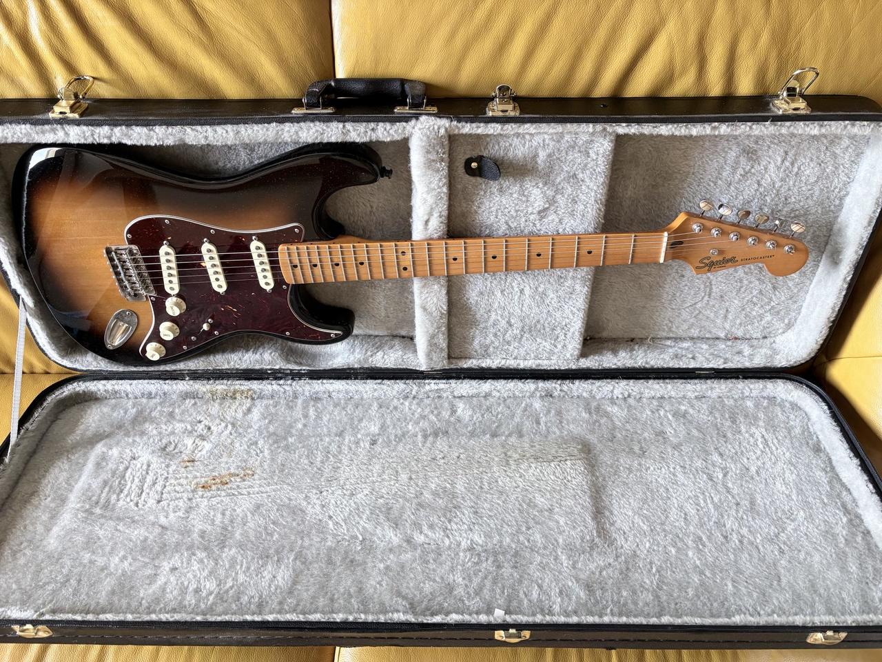 Prodám 3 roky starou doma hranou kytaru squire Fender stratocastera osazenou snímači Fender TEX-MEX K kytaře přidám kufr zdarma a původní snímače. původní cena kytary byla 10 500 Kč a snímače TEX-MEX Pre-Wired stály 4.047 Kč.