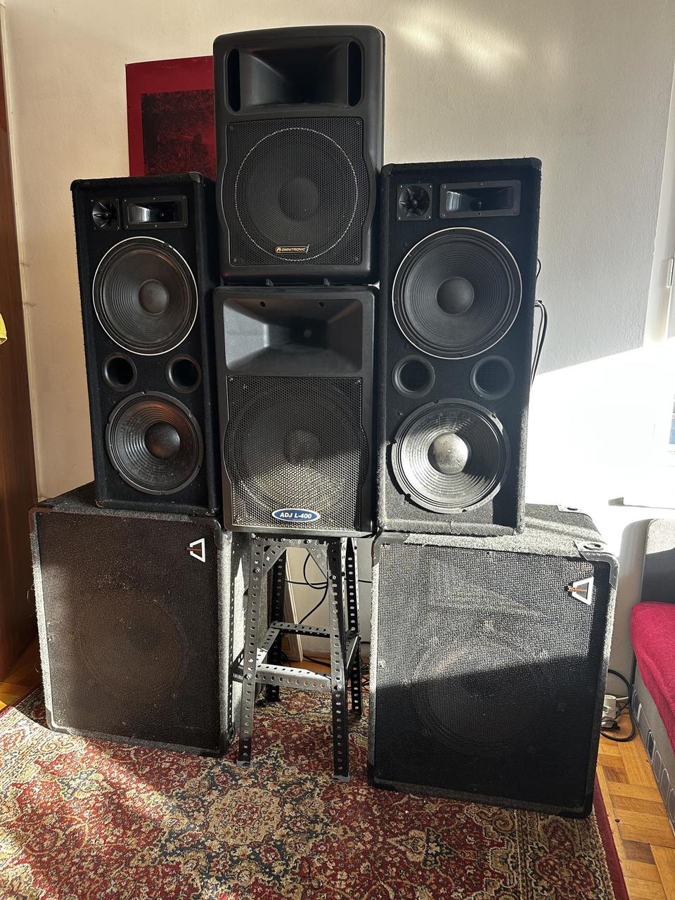 Prodám tuhle sestavu 6ti beden. Jedná se o 2 aktivní a 4 pasivní bedny, je možno je zapojit tak aby se napájeli navzájem. Bedny jsou starší, dovezené z německa. Ideální na ozvučení menších akcí či klubů. Foto konkrétních značek přikládám do galerie.