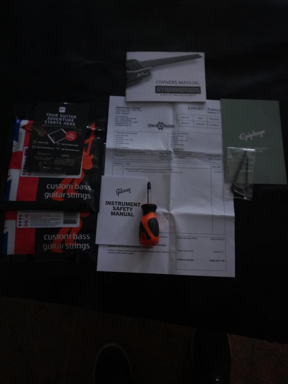 Kytara zakoupena u Gear4music 20/6/2025. Já ji pořídil letos v lednu jako zálohu na plesovou sezonu. Kytara je seřízena a jsou k ní 3 sady strun Rotosound. Dvě nové jedna po zakoupení uložená v obalu. Na kytaře jsou zámky, popruh v barvě a kapsička na vysílač. Součástí je i org. transportní vak. Faktůra přiložena. návod, klíče.
