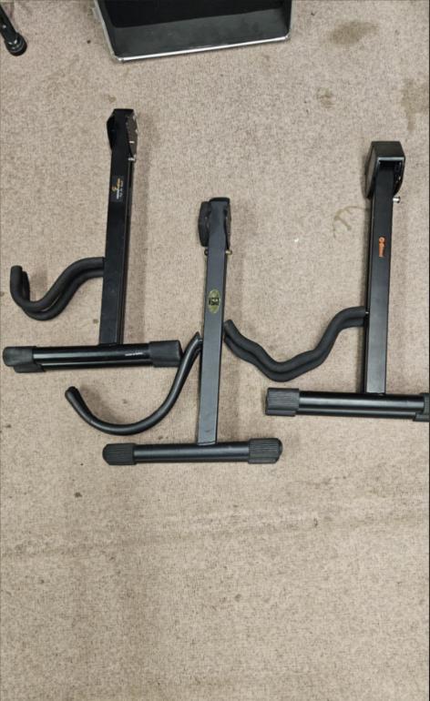 Ahoj, prodám 3x stojany na kytary a 1x kytarové kombo - nejlépe jako celek. Vše je plně funkční, prodávám z důvodu nevyužití – jarní úklid ve zkušebně.
