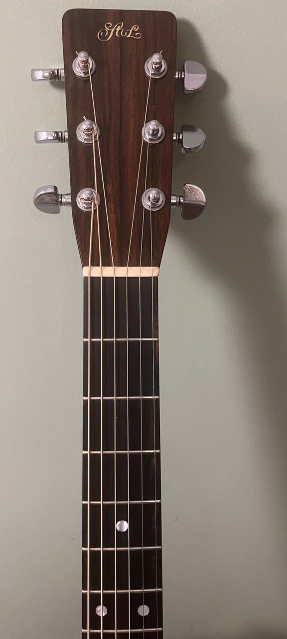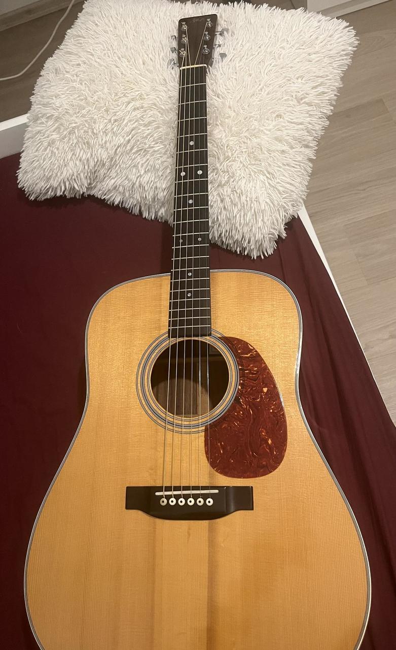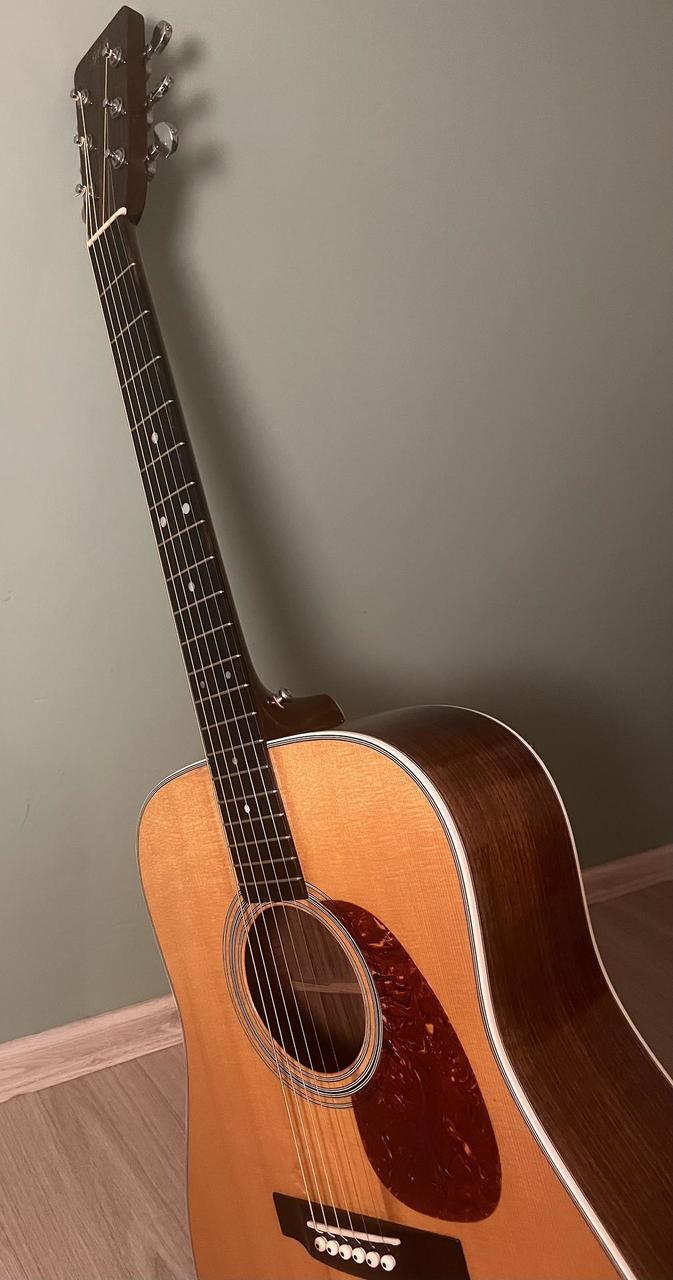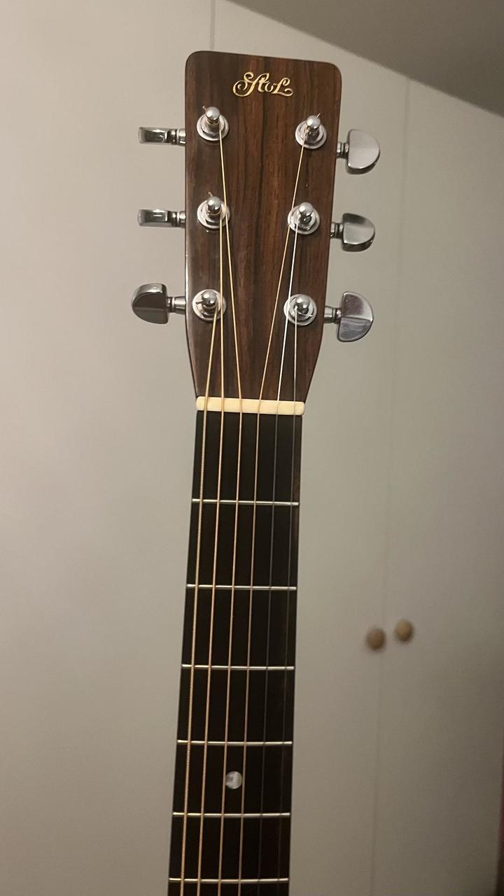 Nabízím 4. Kytaru Standy Štola, přední deska smrk, krk mahagon/Eben, tělo palisandr, šířka 0. pražce 43mm , snímač Fishman Natura I. Vyrobena dle Martin D 28 (1934).