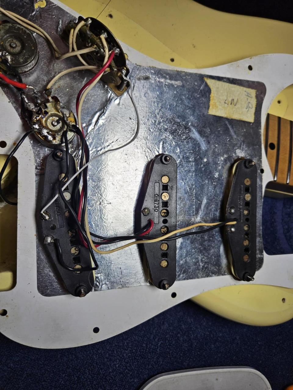 Prodám skládaného strata, tělo Fender US standard 1990 , krk měněn za Custom Sivčák 9.5" . Krk je velmi pohodlný s nízkým dohmatem a s kvalitními pražci, hodně precizně vyrobený. Zamykací mechaniky Gotoh. Snímače american standard pickups Alnico 5. Hodnoty: B 7,22K M 6,67K N 6,65K , měřil pan Dronski.