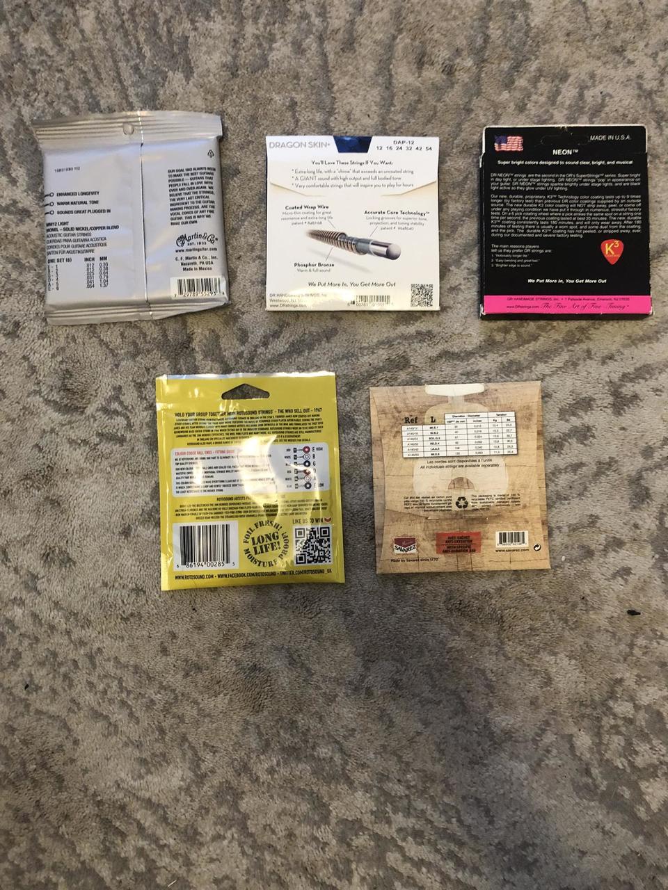 Prodám struny na akustickou kytaru originál baleny. Nové nerozdělané. Všechny tvrdost .12 Dobré ceny.