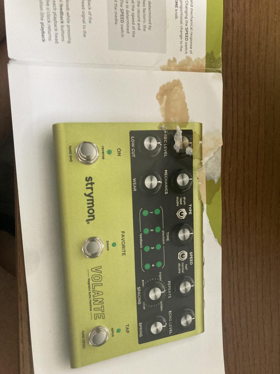 Jedná se o výborný delay / echo pedal s krásným charakterem, vhodný jak pro kytaru, tak i další nástroje. Zvukově jde o špičkový efekt s širokými možnostmi nastavení. Stav a poznámky: - pedal je plně funkční - celkově v dobrém stavu - manuál je bohužel politý Kontaktolem (viz foto) - knob Rec se dá nekonečně otáčet, ale na funkci to nemá vliv. Vhodné pro hráče, kteří hledají kvalitní a inspirativní echo/delay od Strymonu. Preferuji osobní předání