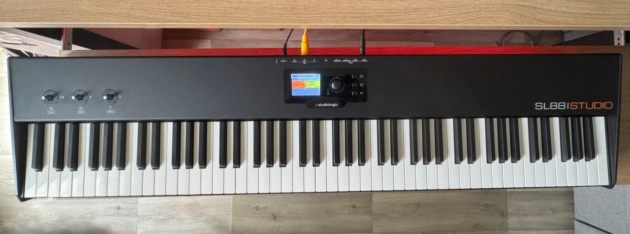 Začátkem května prodám master keyboard Studiologic SL88 STUDIO. 88 kláves, hammer mechanika TP/100LR, 6 editovatelných křivek citlivosti klaviatury, USB To Host, 1x MIDI IN, 2x MIDI OUT, 4 vstupy pro pedály. Lehce hrané pouze v domácím prostředí, perfektní stav. Předání Praha, Písek