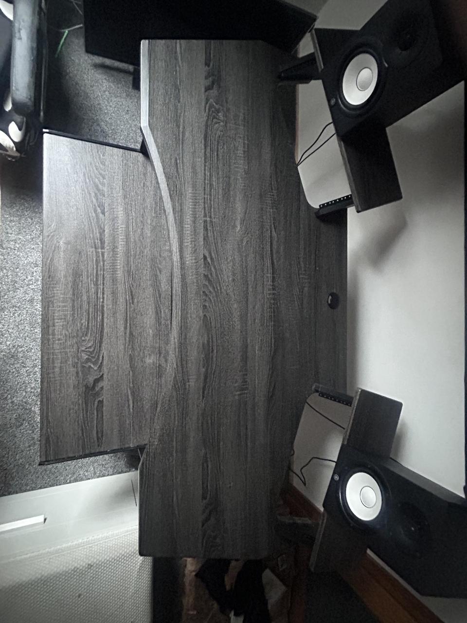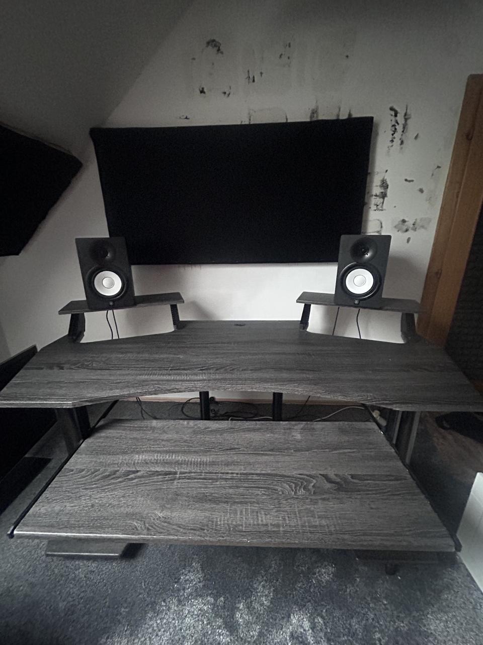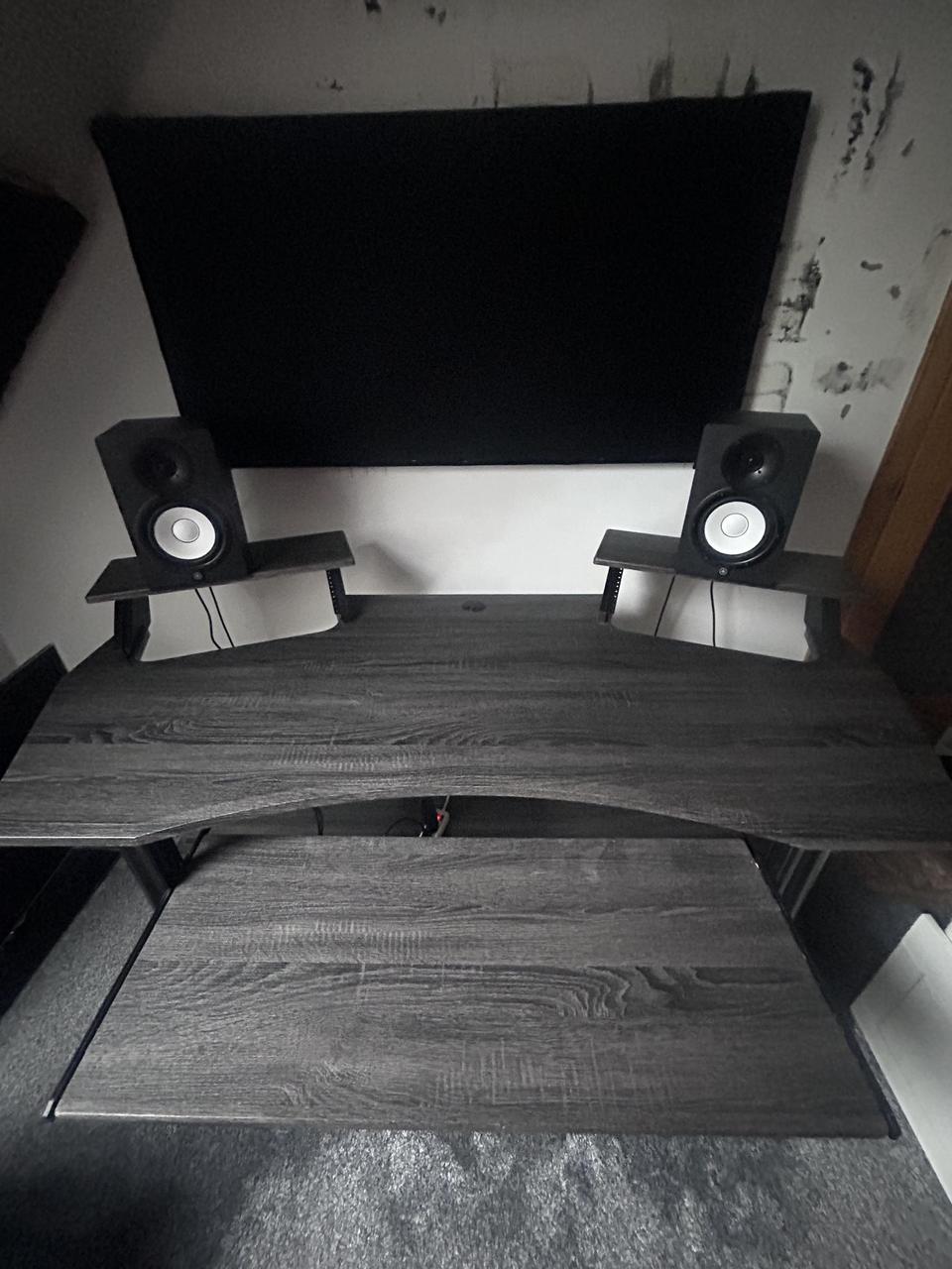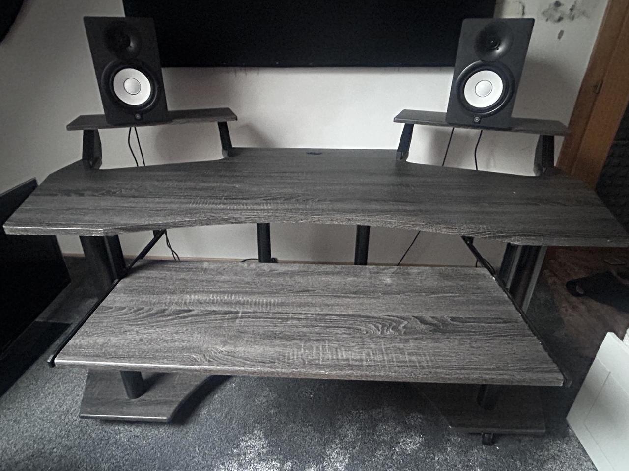 Prodávám prostorný pracovní stůl pro nahrávací a produkční studia – má praktické uspořádání, vejde se na něj pohodlně mix, monitory i další studiové vybavení. Konstrukce je bytelná a stůl má moderní vzhled. Je ve velmi dobrém stavu, jen pár drobných známek běžného používání.