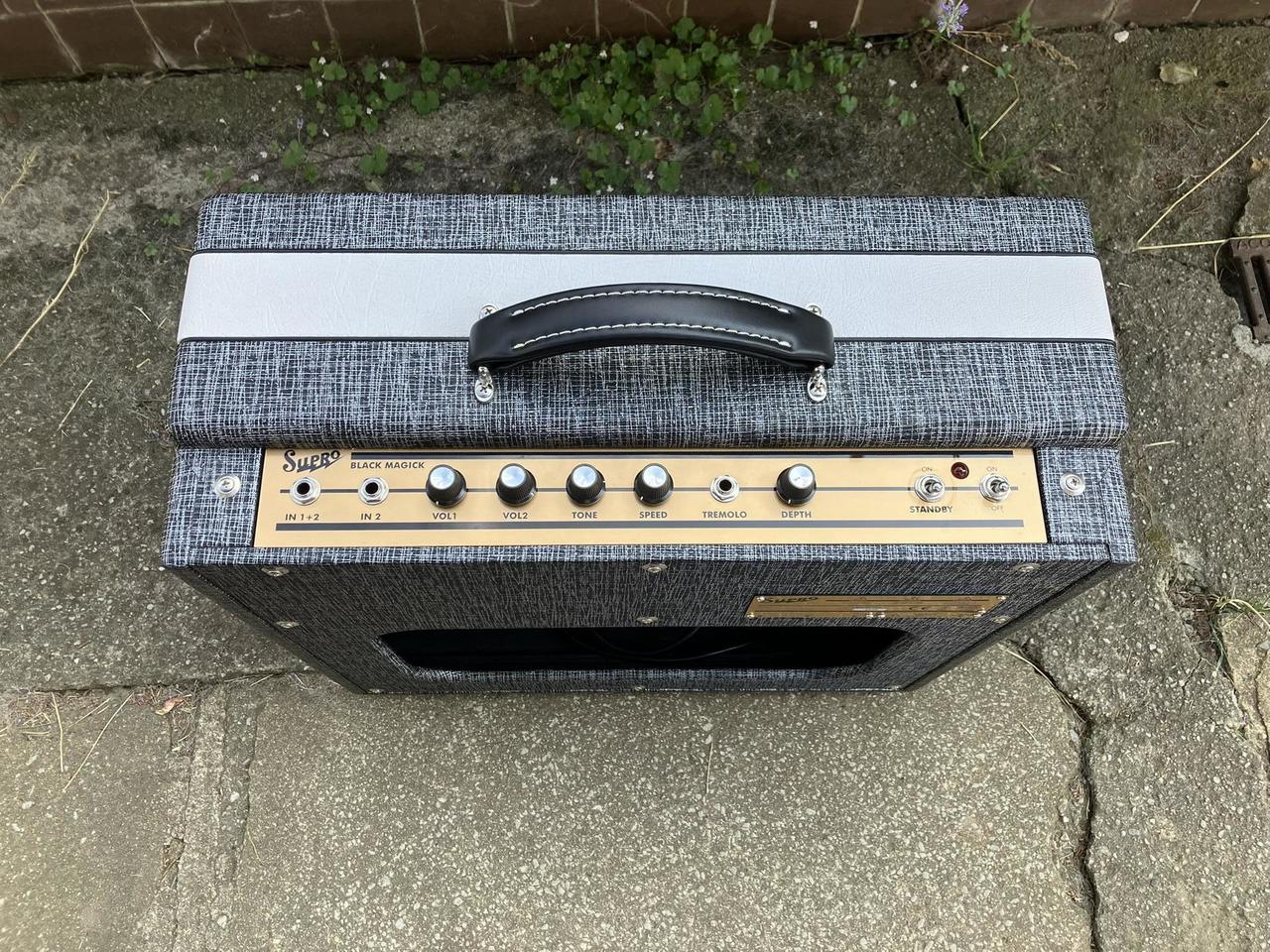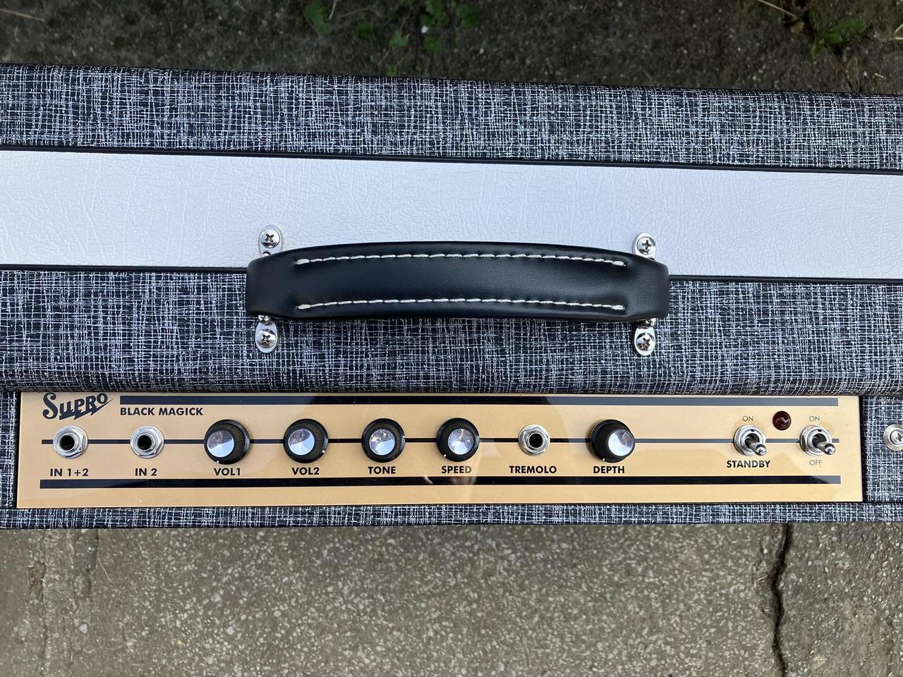 Prodám kombo Supro Black Magick, 25W, tremolo, repro Jensen P12Q, super stav. Přidám ještě dvě nové sady koncových lamp EHX 6973. Možná výměna za Fender Princeton 65RI nebo Marshall Silver Jubilee, 2550, JCM800 apod.