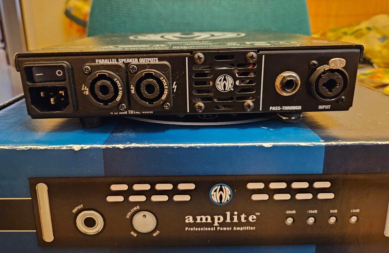 Predám koncový zosilovač SWR-AMPLITE. Funguje bezchybne- používaný len doma.Kozmetická vada-viď.foto.