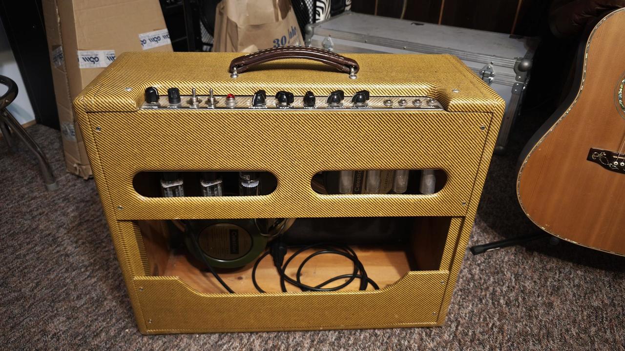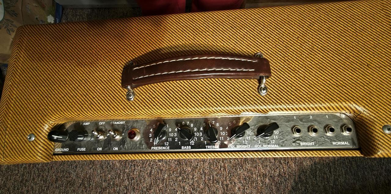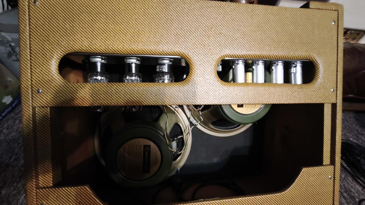 je založený na legendárnom Fender Tweed Twin Low Power®. zosilňovač z polovice 50. rokov 20. storočia a obsahuje napájací zdroj s dvojitým usmerňovačom presne ako predchádzajúce modely Bassman 5E6. Tiež známy ako dvojvstupový tweed Bassman. Tento zosilňovač typu 5E8-A si obľúbili gitaristi zo západného pobrežia ako Junior Watson a Alex Schulz, ale aj Eric Clapton bol videný hrať na starom origináli. kombo má nainštalovaný aj Master volume ,takže dá sa dobre vybudiť na gainoch. Power: ca. 40 Watt Impedance: 4 Ohm Tubes: 1x 12AX7A-C / ECC83, 3x 12AY7, x 6L6WGC- x 5U4GB Speaker: 2x Celestion G 12 Heritage 30w made in england. Cena : 1150 eur, nie výmena