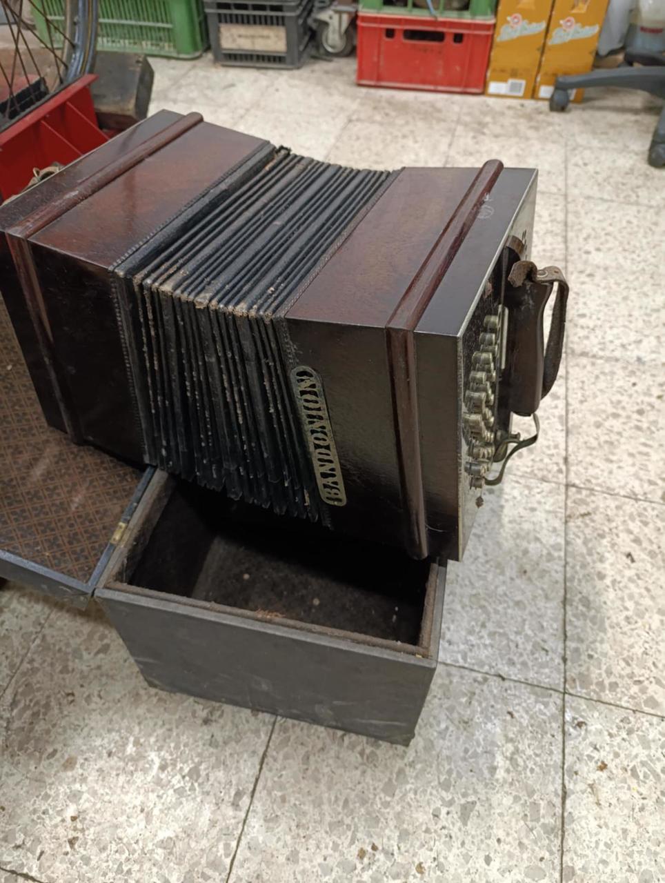 Nabízím k prodeji starožitnou knoflíkovou tahací harmoniku Bandoneon začátek 19.století.