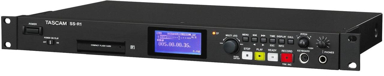 Tascam SS-R1 nabízí PS/2 vstup pro klávesnici pro jednoduché pojmenovávání souborů a složek a dálkové ovládání. Dálkově lze SS-R1 ovládat i přes RS-232 a paralelní rozhraní. Tascam SS-R1 má ve výbavě nesymetrické vstupy i výstupy (RCA) a symetrické rozhraní (XLR a Euroblock) a S/PDIF digitální rozhraní (koaxiální i optické). Vlastnosti: • Dvoukanálové digitální nahrávací zařízení • Médium: Compact Flash karta • Záznam: PCM nebo MP3 (16/24 bit, 44,1/48 kHz) • Dálkové ovládání přes paralelní rozhraní, RS-232 • Velký přehledný displej • Sluchátkový výstup Technické údaje: • Počet kanálů: 2 • Vstupy i výstupy: 2x RCA (Line In/Out), 2x XLR (Line In/Out), koaxiální (S/PDIF In/Out), 1/4“ Jack (sluchátka) • RS-232C, paralelní rozhraní