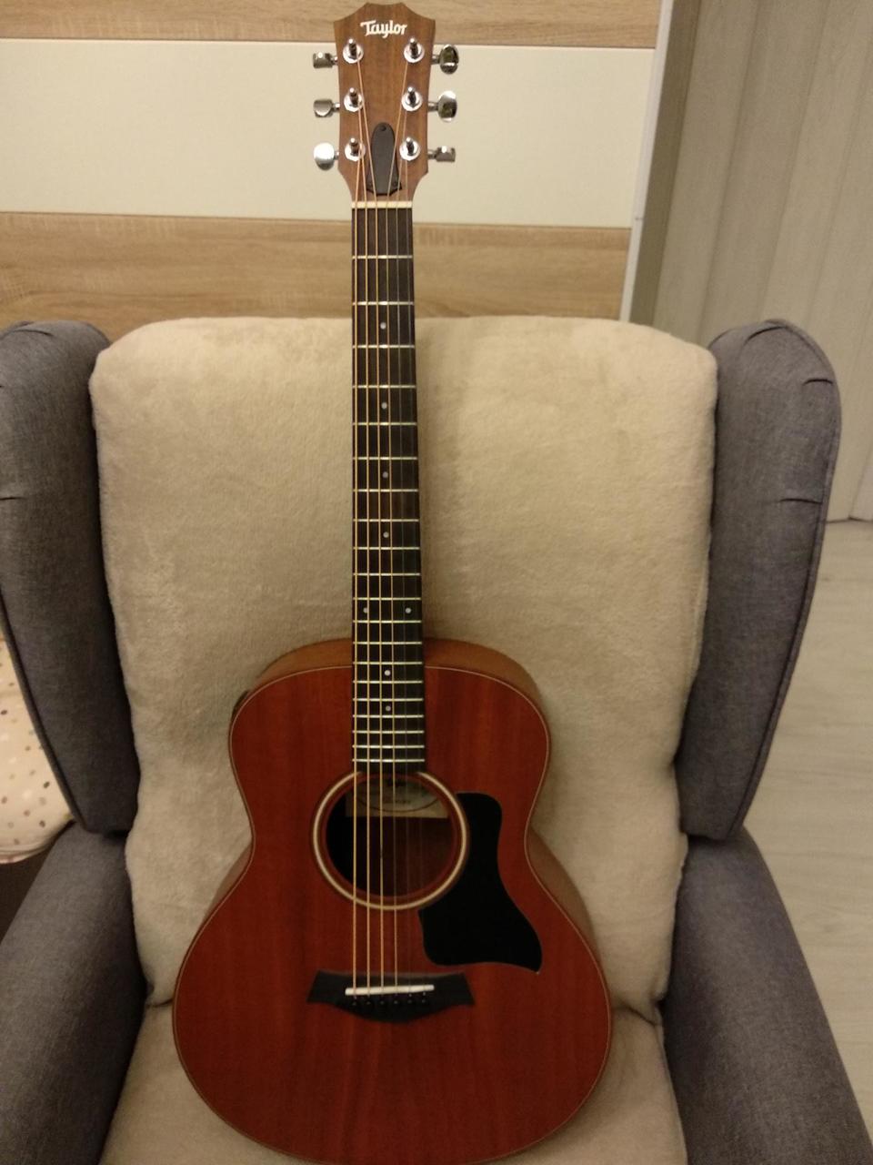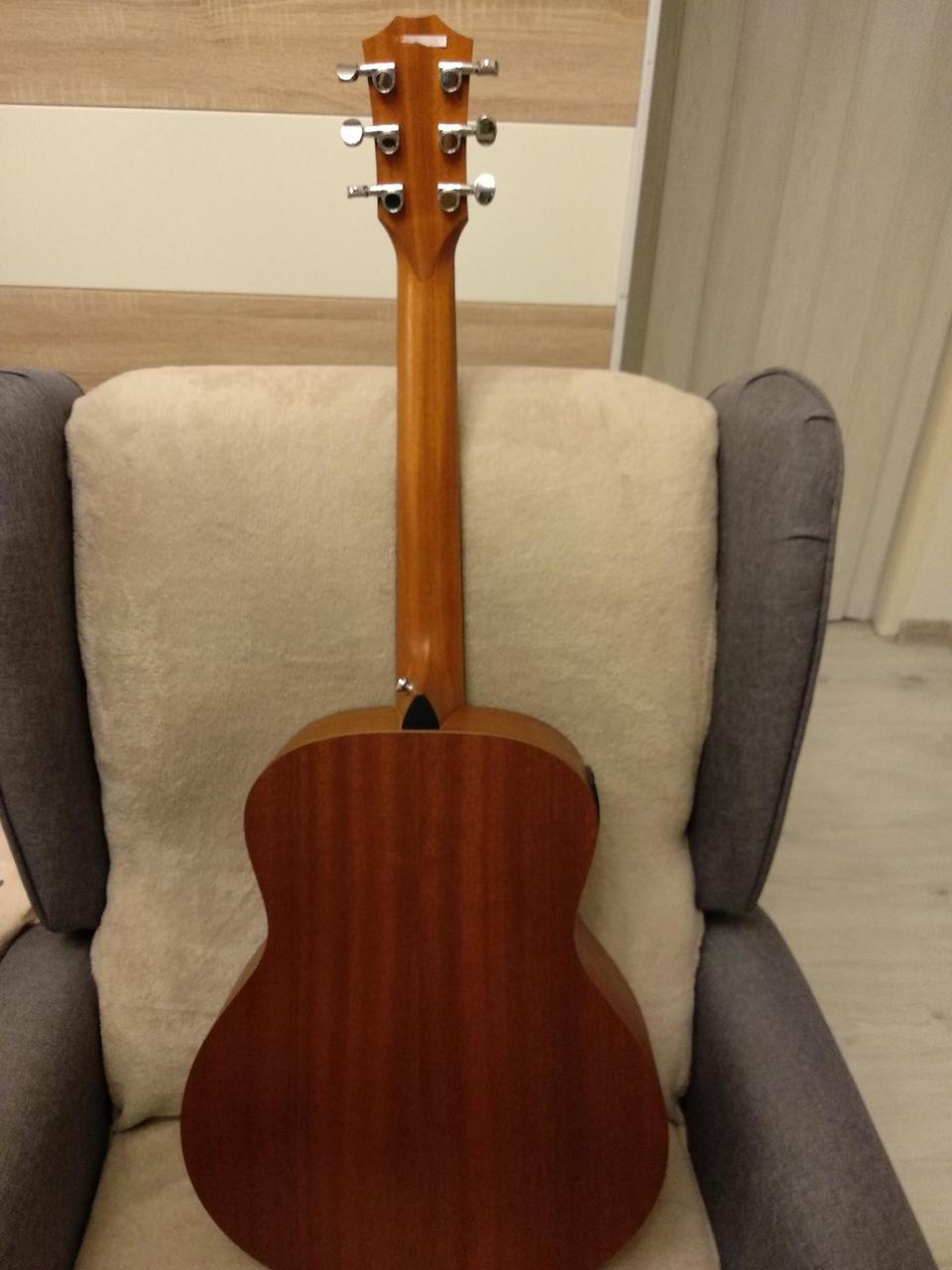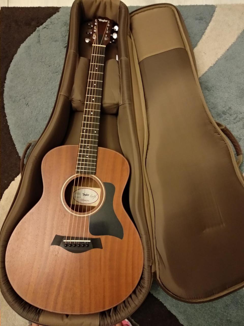 prodám elektroakustickou kytaru Taylor GS mini e-mahagon. Nástroj je velmi málo používaný v bezvadném stavu. Jedná se o polomasív, přední deska je z masívního mahagonu, zadní deska a luby z mahagonu. Mahagonový masívní krk je vybaven dvoucestnou výztuhou k pohodlnému seřízení dohmatu. Ebenový hmatník je osazen 20-ti pražci, kobylka je rovněž z ebenu. Menzura je 597 mm, nultý pražec 42,9 mm. Kytara je vybavena kvalitní elektronikou Taylor. Ladění zajišťují chromované uzavřené mechaniky. Kytara je v matném provedení, na přední desce je umístěn černý pickard. Součástí prodeje je originál gig bag. Nástroj má nízkou hmotnost a krásný vyvážený zvuk. Recenze: