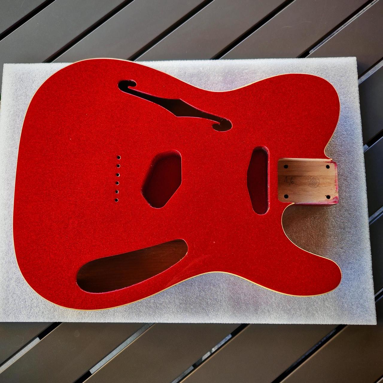 Máme na predaj gitarové telo: Tele thinline Jelša (Olše) 1.6kg Poly lesklý perleťový lak (v prednej časti je jedna o kúsok väčšia vločka perlete - nie je to defekt, len upozorňujem) Dvojitý krémový lem Konfigurácia SS String through Šírka päty okolo 55mm - jemne treba dobrusit na štandardný fender rozmer. Možnosť zaslať aj do ČR na dobierky cez Zasilkovnu. Cena 150€ aj s doručením.