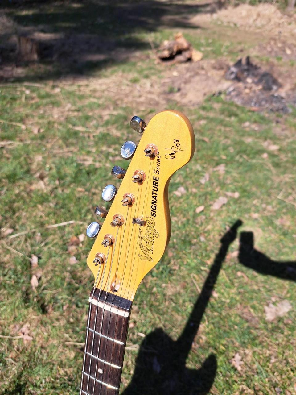 nabízím těžko sehnatelný Telecaster Vintage V66 Paul Rose Signature. Nejrezonatnější kytara, kterou mám. Specifikace: “Moje kytara V66 má tak jednoduchý formát, a přesto mě zvuk a charakter inspirují pokaždé”, říká Paul Rose, “prostě nemůžu projít kolem, aniž bych to zvedl.” Tělo: Double-bound USA Alder tělo poskytuje rezonanci, tón a 'správnou váhu' pohodlí, vylepšené správně zaoblené tvarované tělo. Most: Intonovatelný most Wilkinson WTBD eliminuje letité problémy s intonací, které se často vystavují u tříselných pevných konstrukčních mostů. Snímače: Dvojka Wilkinsonových jednoduchých cílů pro tradiční tóny v kombinaci se současnou silou, s laskavým svolením alnico WVTN snímače na krku a alnico WVOB v pozici kobylky. Ovládání: Jednohlavní ovládání hlasitosti a tónu s třícestným přepínačem snímače. Stroje Hlavice: Strojní hlavy Wilkinson WJ55 poskytují jednoduché, efektivní působení pro maximální stabilitu ladění. Krk: Kanadský hard rock Javor s klasickým Vintage 'soft C' profilem pro okamžité pohodlí, rychlost, přesnost a skvělý pocit. Hmatník: 7,25“ vintage radius palisandrový hmatník poskytuje pozitivní pocit a vynikající hratelnost. Délka stupnice: 5,5“ / 648 mm. Pražce: se středním profilem přispívají ke komfortu, přesnosti a celkově pozitivnímu postoji. Matice: 43 mm matice GraphTech, hladká a bez tření K vyzkoušení Třebíčsko na lampovém zesíku, připadně zaslání přes DPD.