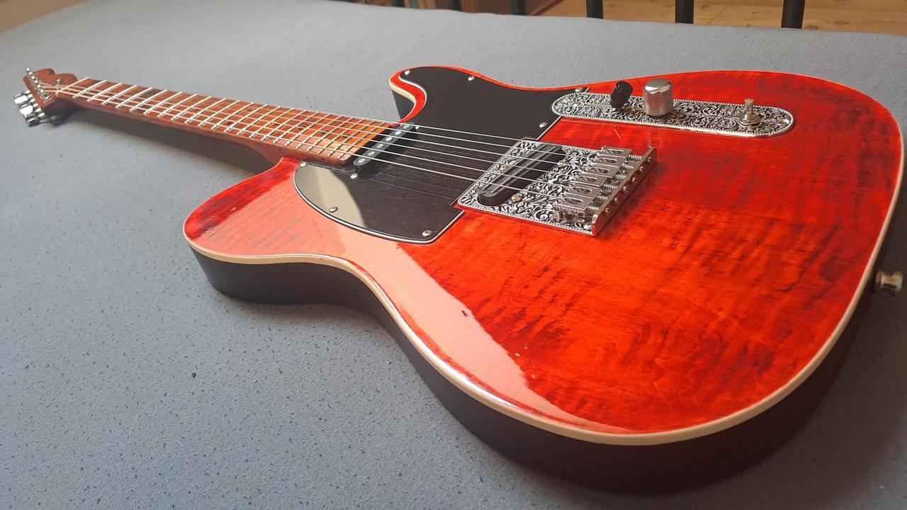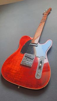 Prodám Telecaster. Tělo jasan, TOP javor, oba snímače s Alnico magnety, zamykací mechaniky s převodem 1 :18. Humbucker má přepínání na sériové a paralelní zapojení. Struny skrz tělo. Parádní zvuk.