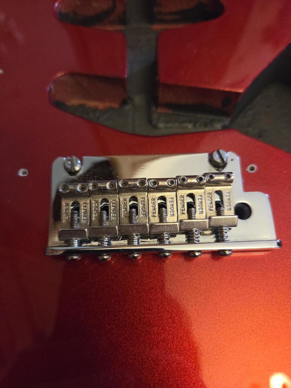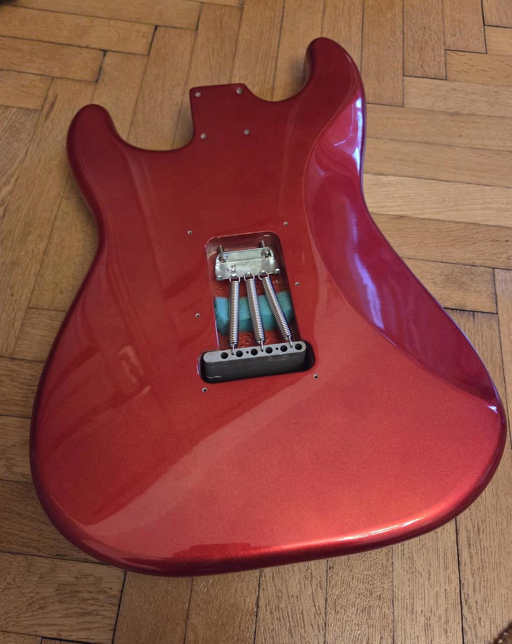 Dobrý den, prodám Stratocaster tělo v barvě Candy Apple Red od pana Michala z musicbuddies.eu. Výborný stav, rok používaný. Nainstalované Dunlop závěsy na řemen. 2 otvory pro dvoubodové tremolo. Případně můžu prodat i s Fender American Professional tremolem (+1700).
