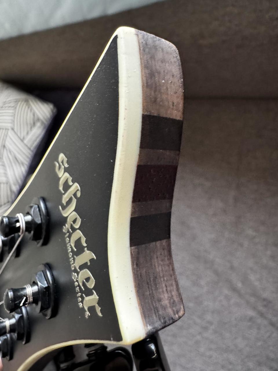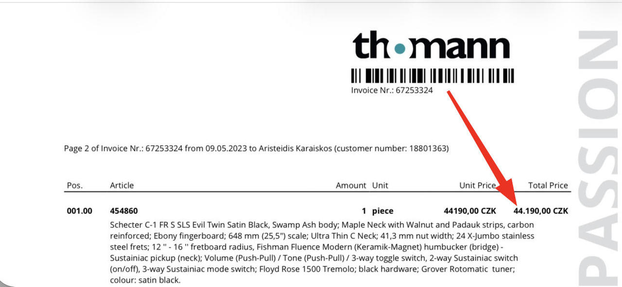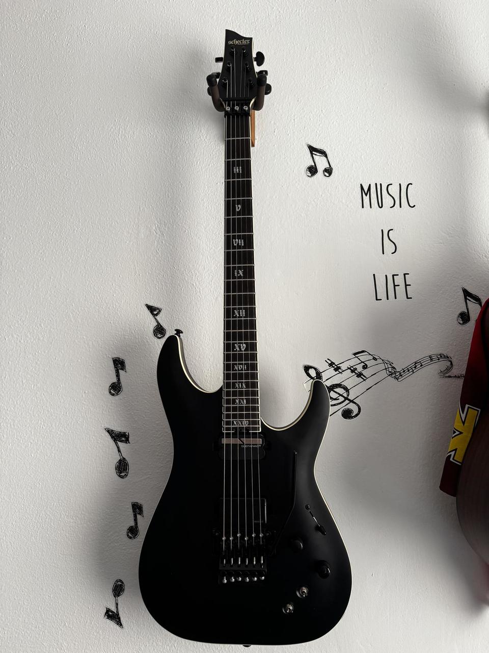 Floyd Rose 1500, Systainiac, Active Fishman Top stav - Kytara je jako nová. Koupil jsem za 44 tisíc. Koupil jsem ji 5.2023, kvůli dětem jsem ji moc nepoužíval. + 21.2.2026 nainstaloval jsem novy elixir nanoweb custom light 9-46 struny. Je to moje druhá kytara (moje první je jedna levnější ibanez, kterou si beru do zkušeben atd.). Pokaždé, když jsem dohrál, jsem ji otřel ručníkem a pak nanesl olej na struny. A pak jsem ji pověsil zpět na zeď, přikrytou prostěradlem. Proto nemá rez kolem kobylky ani prach. Pokud si mě přidáte na WhatsApp/Viber (608530245) nebo Messengeru "Aris Karaiskos", můžu vám poslat detailní fotografie. Pokud chcete vyzkoušet, Brno - Nový Lískovec, neposílám přes zásilkovnu. https://www.thomann.de/cz/schecter_c_1_fr_s_sls_evil_twin_sbk.htm?shp=eyJjb3VudHJ5IjoiY3oiLCJjdXJyZW5jeSI6MTEsImxhbmd1YWdlIjoxM30%3D&reload=1 Tělo z bažinného popela Javorový krk vyztužený uhlíkem s pruhy z ořechového dřeva a padauku Ebenový hmatník Měřítko: 648 mm Profil krku: Ultra tenký C Šířka nultého pražce: 41,3 mm 4 pražců z nerezové oceli X-Jumbo Poloměr hmatníku: 305 až 406 mm Snímače: Sustainiac (krk) a Fishman Fluence Modern (keramický magnet) humbucker (můstek) Ovládání: Hlasitost (Push-Pull) a Tón (Push-Pull) 3polohový přepínač polohový přepínač Sustainiac (Zapnuto / Vypnuto) 3polohový přepínač režimu Sustainiac Groverovy ladičky Tremolo Floyd Rose 1500 Černý hardware Barva: Saténově černá