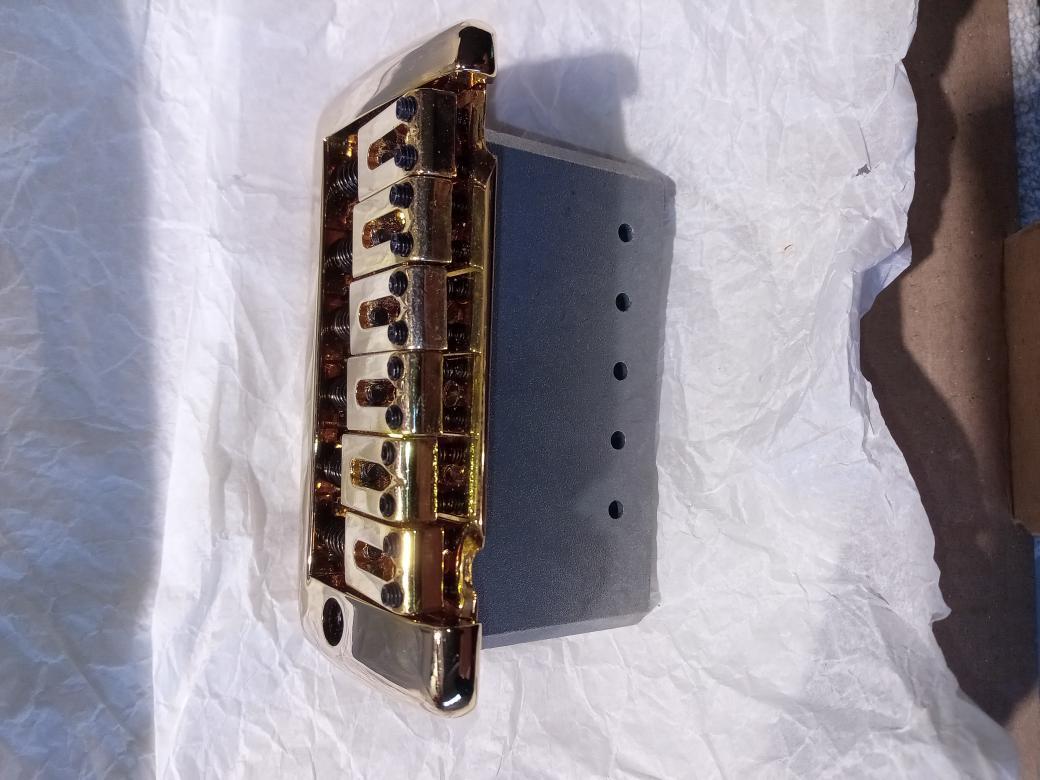Prodam nové, nepoužite tremolo v Gold provedeni, rozteč strun 53mm, montážní rozteč ca. 55-56mm, komplet vč montažniho přislušenství a tremolo páky. Možno vyzvednout v Praze nebo zaslat na zasilkovnu + 150Kč.