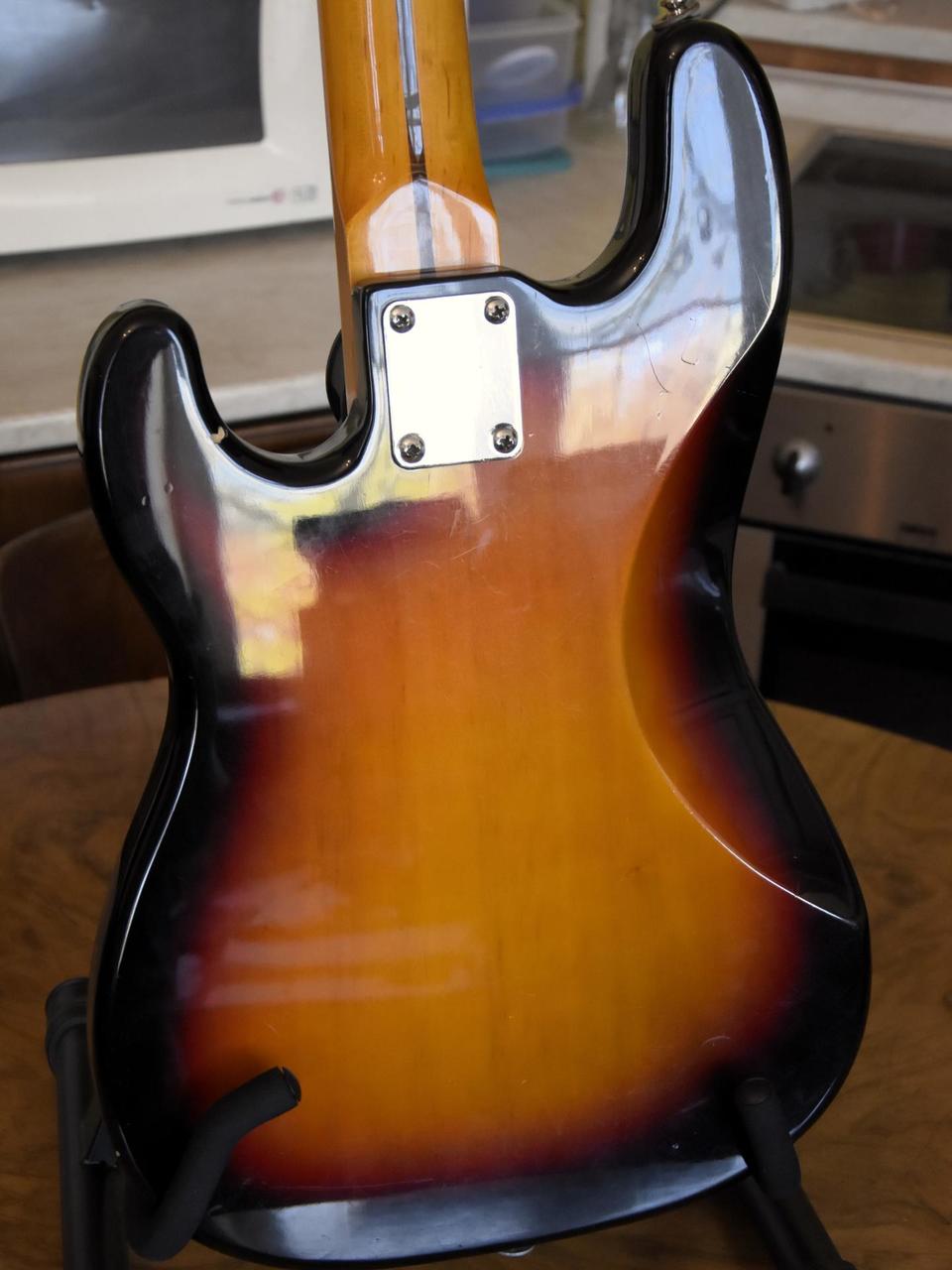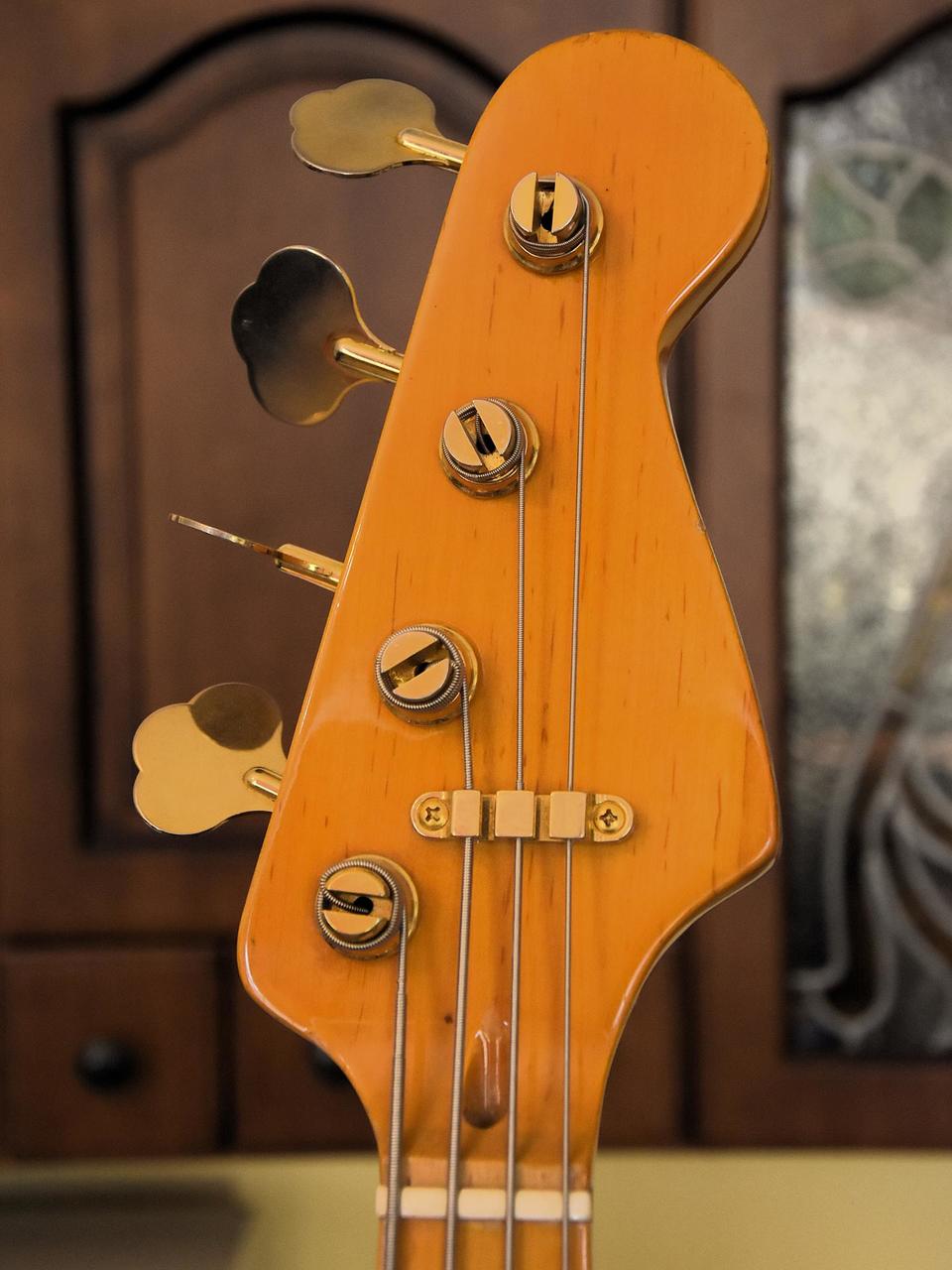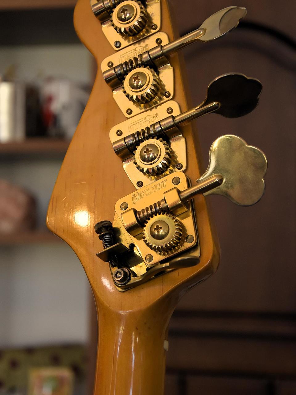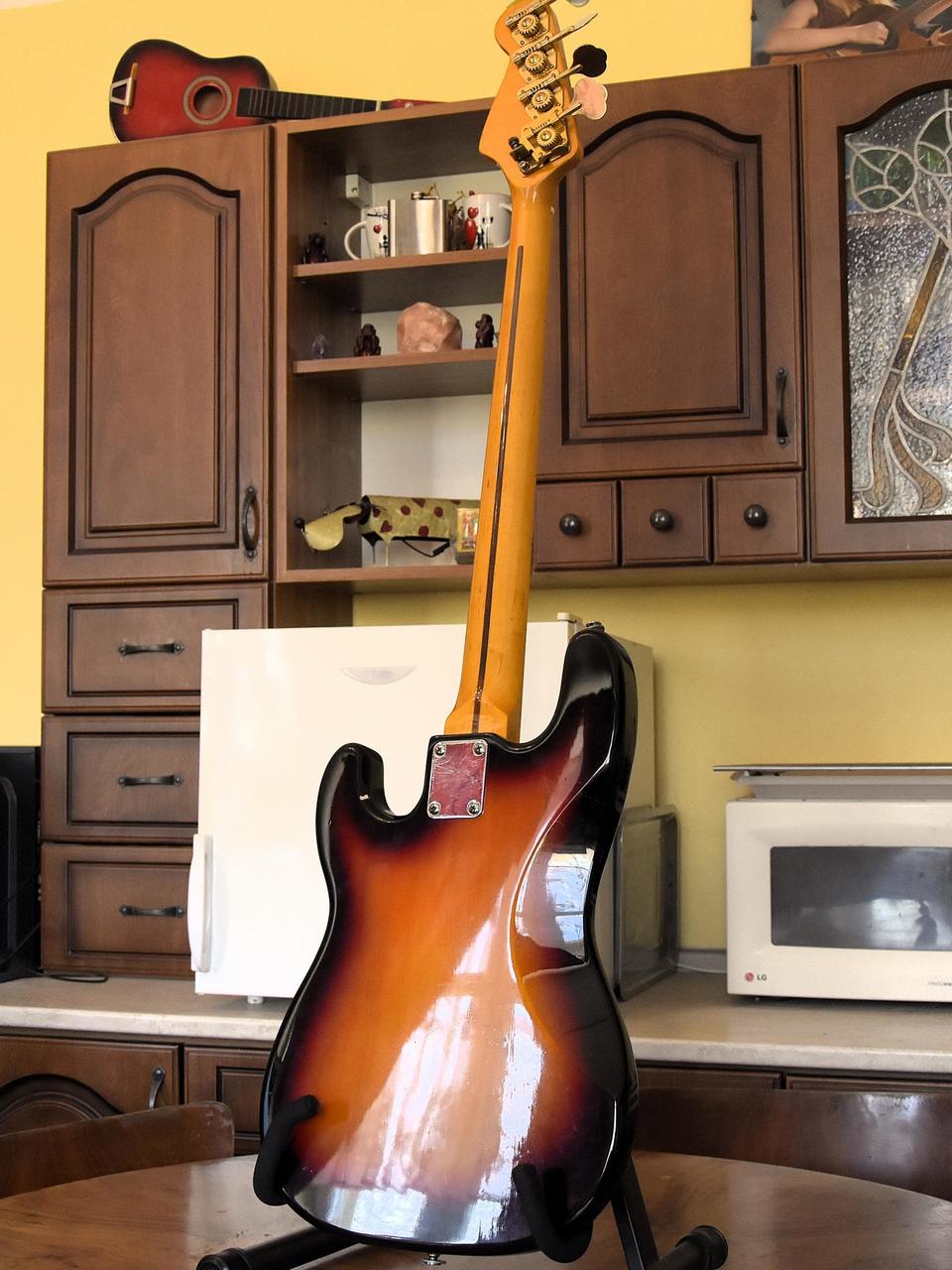Tělo je vyrobeno z olše, která dodává vyvážený tón s příjemnými středy, krk je javorový a zajišťuje dobrou odezvu i stabilitu. Baskytara je osazena kvalitními mechanikami Wilkinson, přičemž struna E je vybavena D-tunerem Hipshot pro rychlé podladění. Stav nástroje odpovídá stáří, plně funkční a připravený k okamžitému hraní. Základní specifikace: Tělo: olše (Precision Bass tvar) Krk: javor Hmatník: javor Konfigurace: Jazz Bass (2 snímače) Mechaniky: Wilkinson + Hipshot D-tuner Kobylka: Schaller Zakázkové nástroje od pana Váchy jsou ceněné pro pečlivé zpracování, důraz na detail a individuální přístup. Každý kus je originál, stavěný s ohledem na hráče i výsledný zvuk.