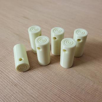 Nabízím sadu 6 ks reprodukcí válečků na kytarové mechaniky, které se dávaly na kytary Resonet, Bräuer a také některé jiné modely od Cremony. Jsou vyrobené z tvrdého, odolného plastu.