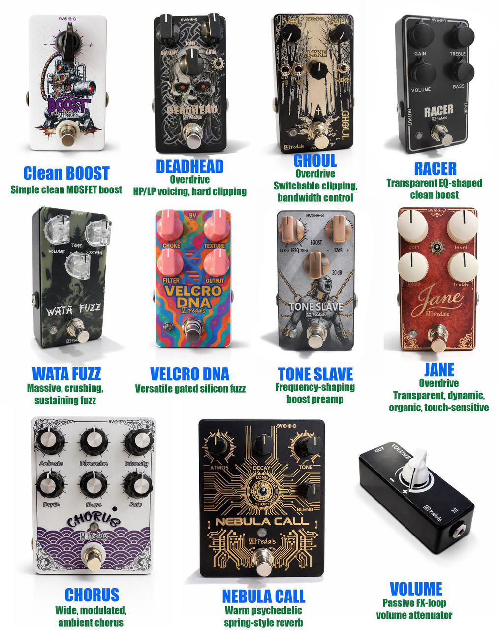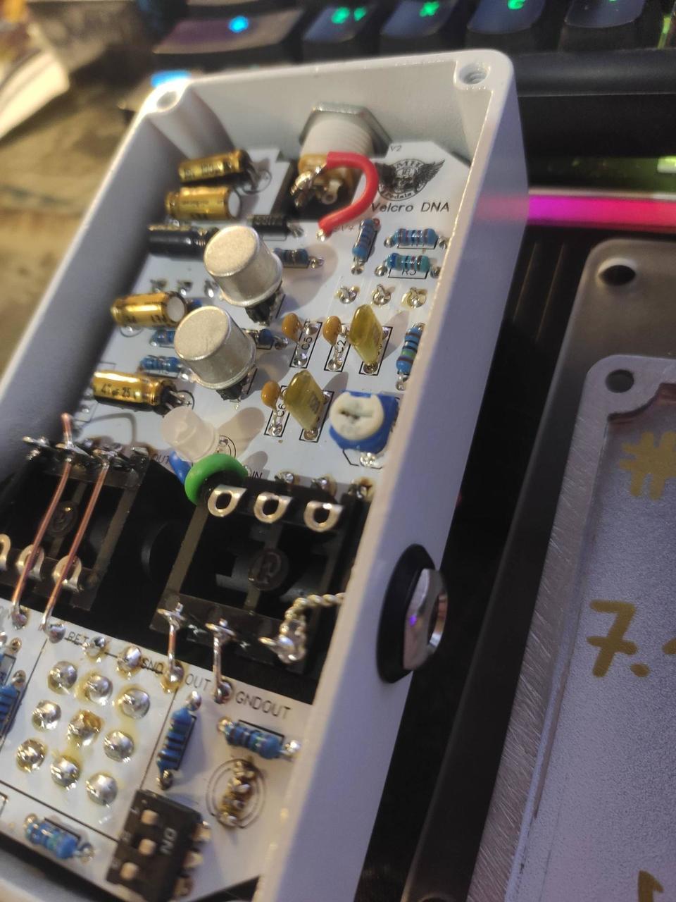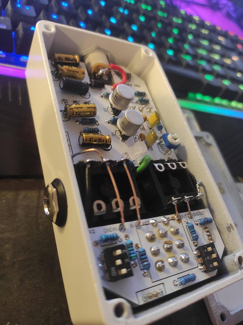 Má volně měnitelný výběr barev podsvícení i ON/OFF kontrolky a to nezávisle na sobě ( k tomu slouží dva trojité přepínače umístěné uvnitř pedálu jejihž kombinacemi se dá velmi snadno a rychle vytvořit až 7 různých barev jak pro podsvícení tak i pro kontrolku . Stejným způsobem se dá podsvícení i vypnout ) . GORVA switch, Alpha potenciometry, Nichicon kondenzátory . Ručně vyrobené a pájené . True bypass . Napájení 9V 100% stav . Cena je bez poštovného . Posílám Zásilkovnou .