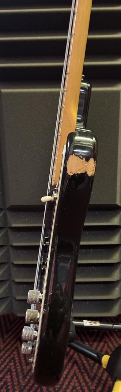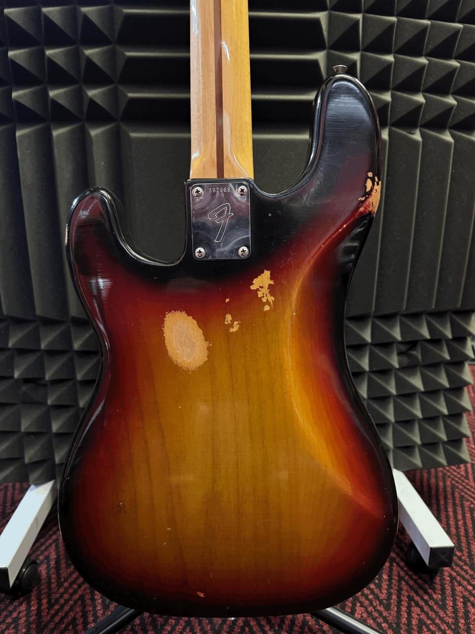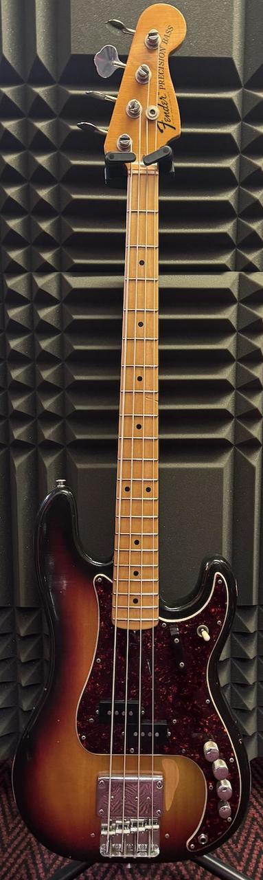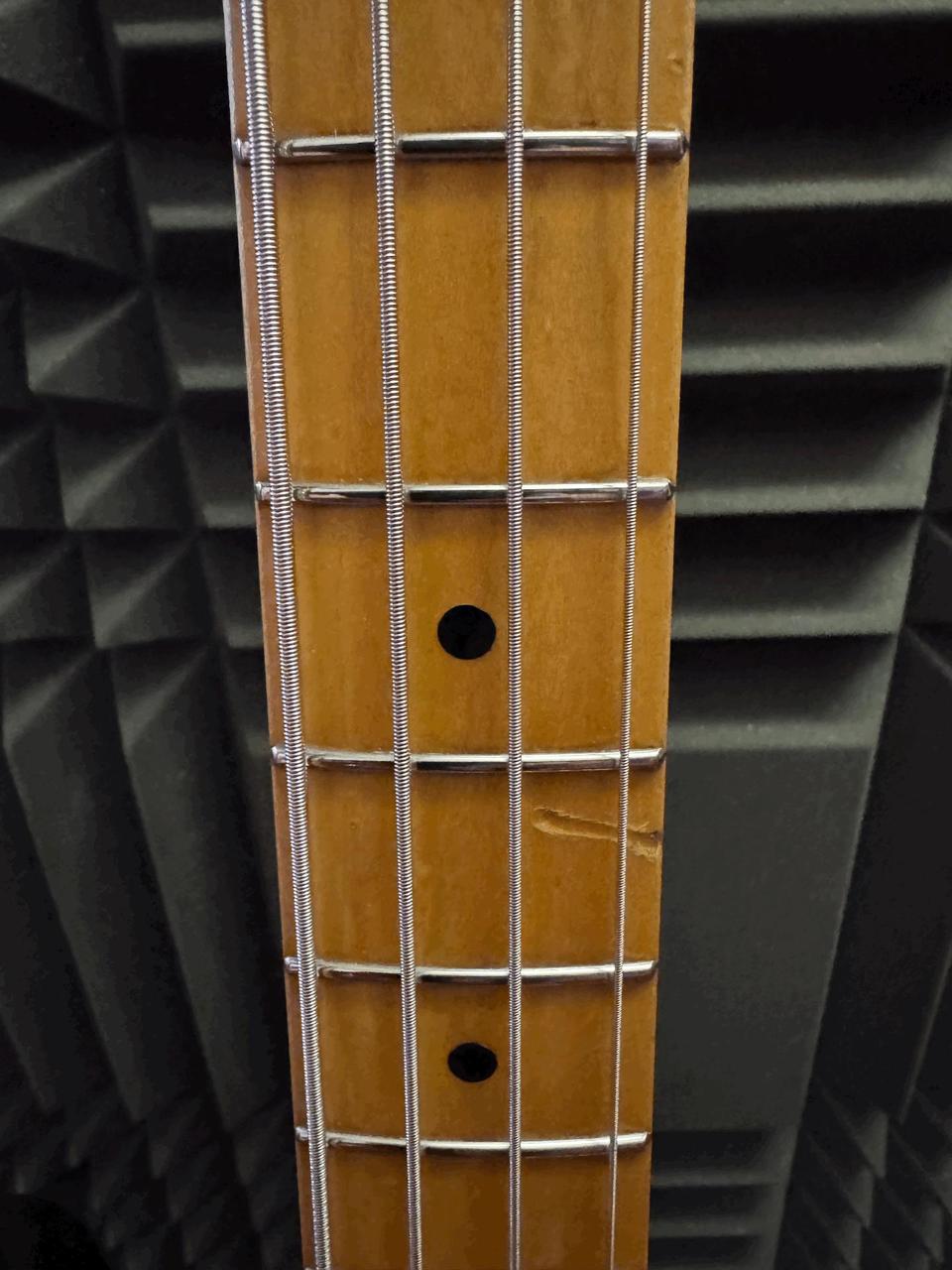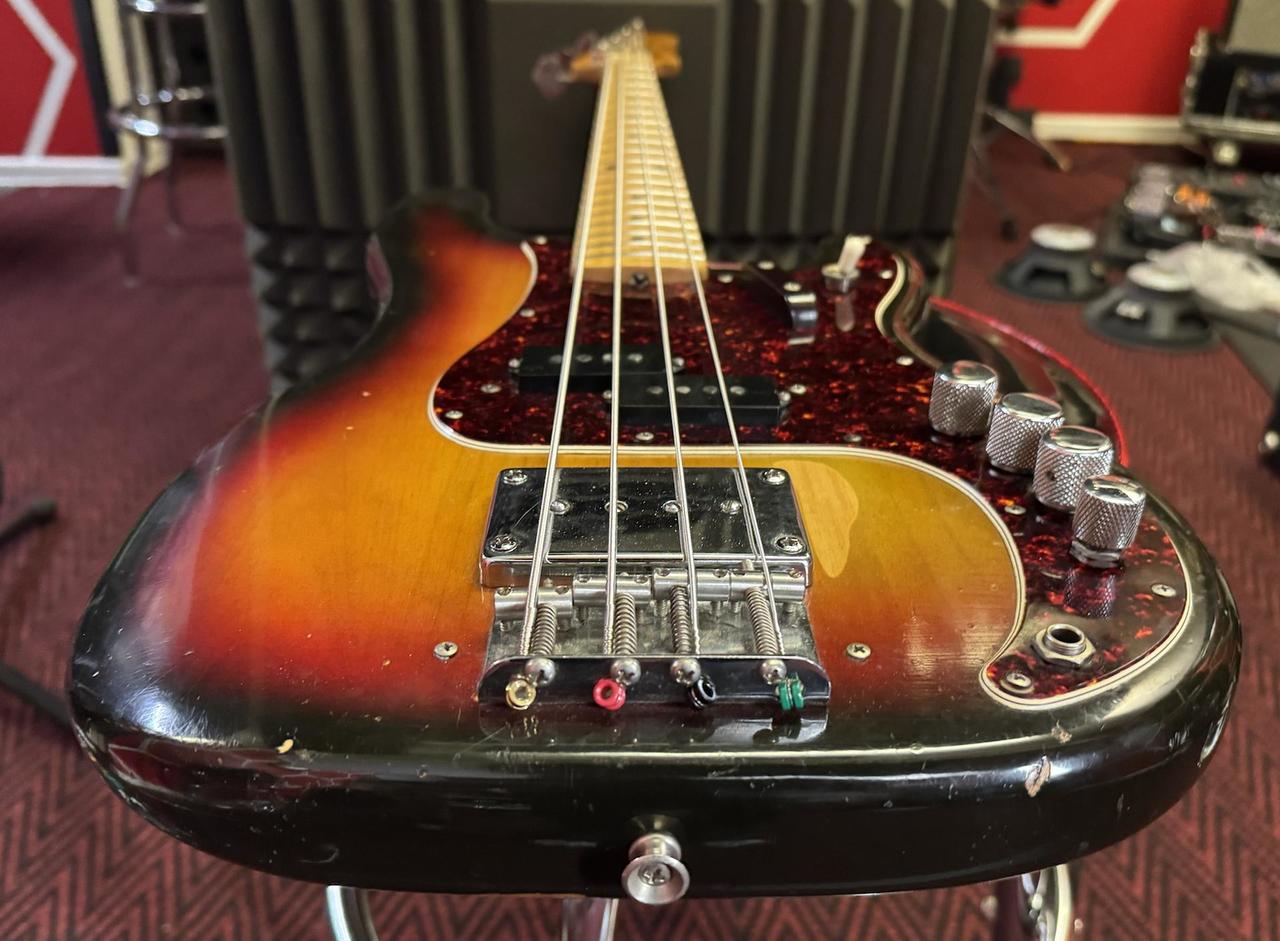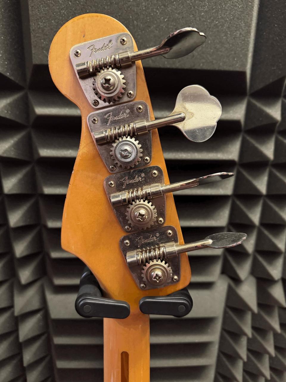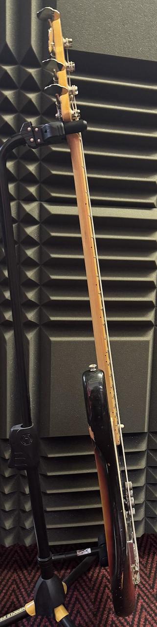 Jedná se o nástroj v perfektním stavu, jak bylo v tomto období 70's zvykem, s modifikací. U kobylky je GIBSON Humbucker a tomu přizpůsobená elektronika. Spousta zvukových možností, Players Bass Guitar na Live i do studia. Nástroj je po kompletním seřízení, nové pražce, zkontrolovaná elektronika u známého kytaráře. Nové struny. Možnost vyzkoušení v nahrávacím studiu na Praze 3 Fullerton Plant (Fender - CBS Era), USA in 1973 - 1974 Production Number: 392668 Možná výměna za Status Bass Guitar (None Headstock)