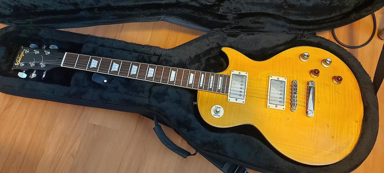 Made in Korea, 2007 All parts original and all hurts by factory, this is an early rliced version of this series. Frets 100%. U can read about it here: https://www.gearmusic.com/store/product/used-vintage-v100mrpgm-lemon-drop-w-bag-consignment?sku=ZZZ00694&srsltid=AfmBOop__CJp_zpQW3vOkiDMnhumEByYTGTIOhJfCwJVn4pnotspiZsk Gator case is included. Located east Budapest. Can meat near to Hu/SLo line but I can shipping by DPD also. Bo trade, thanks.