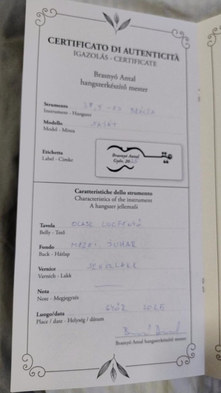 Predám takmer novú violu z dielne Antala Brasnyóa v Győri. Nástroj bol vyrobený v roku 2025. Veľkosť 38.5, struny Evah Pirazzi + Daddario Helicore. Vhodná do ľudovej hudby, ale aj na konzervatórium. Mám kobylku pre oboch. K nástroju je priložený certifikát. Dohoda možná.