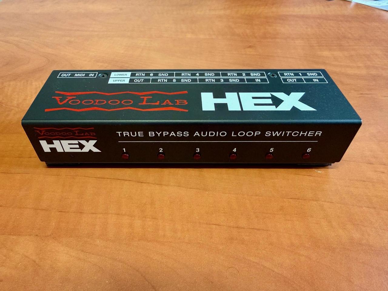 Prodám " True Bypass " přepínač audio smyček Voodoo Lab HEX ve stavu nového kusu. Celkem 6 smyček. První smyčka je zcela izolovaná od zbytku – muže být použita zcela nezávisle. Vysoce transparentní průchozí zvuk, žádné zabarvení. Velmi jednoduché ovládaní přes MIDI – Program Change i Control Change. V této cenové kategorii asi nejlepší, co jde sehnat. Mám dva – jeden pouštím do světa.
