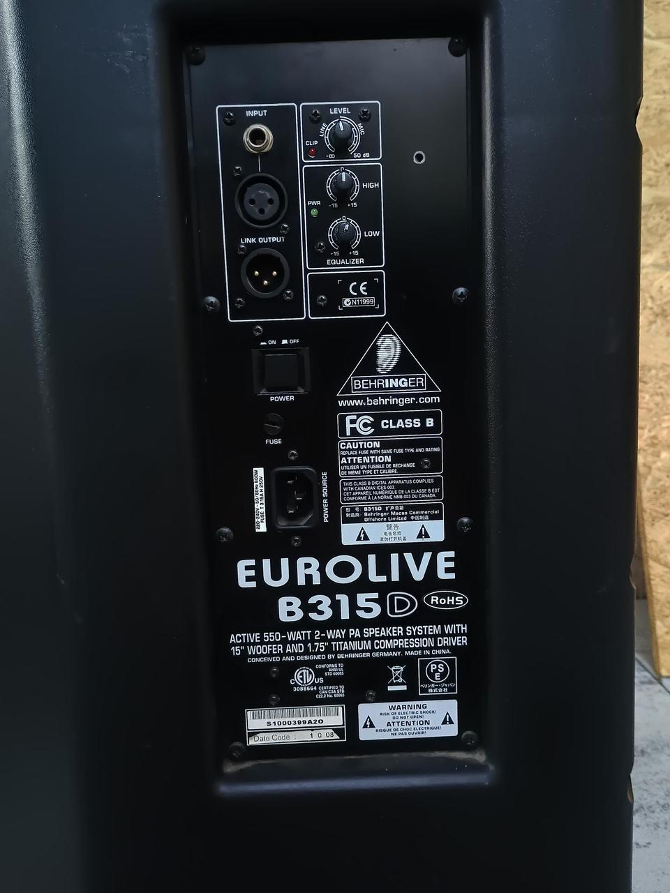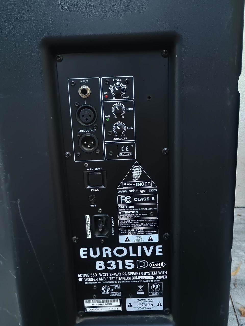 ks Behringer B315d - jen společně, 2-pásmová aktivní reprosoustava (zesilovače Class D se spínaným zdrojem), 550W/RMS 345W 8 ohmů, 15“ reproduktor + 1,75“ titanová horna, integrovaný zvukový procesor (ochrana repro, high-pass filtr), max. SPL 126 dB, frekvenční rozsah 55 Hz - 20 kHz cena 4000,-/ks Osobní odběr vzhledem k rozměrům a vyzkoušení.