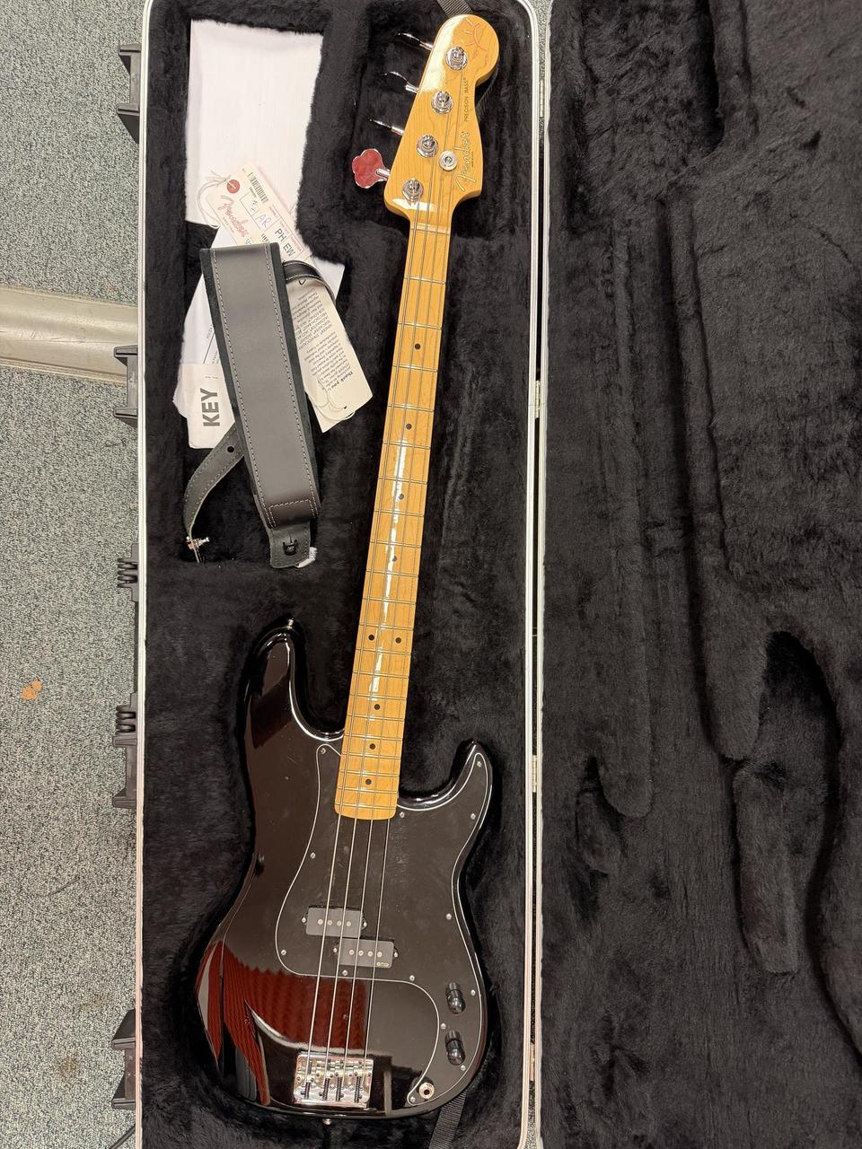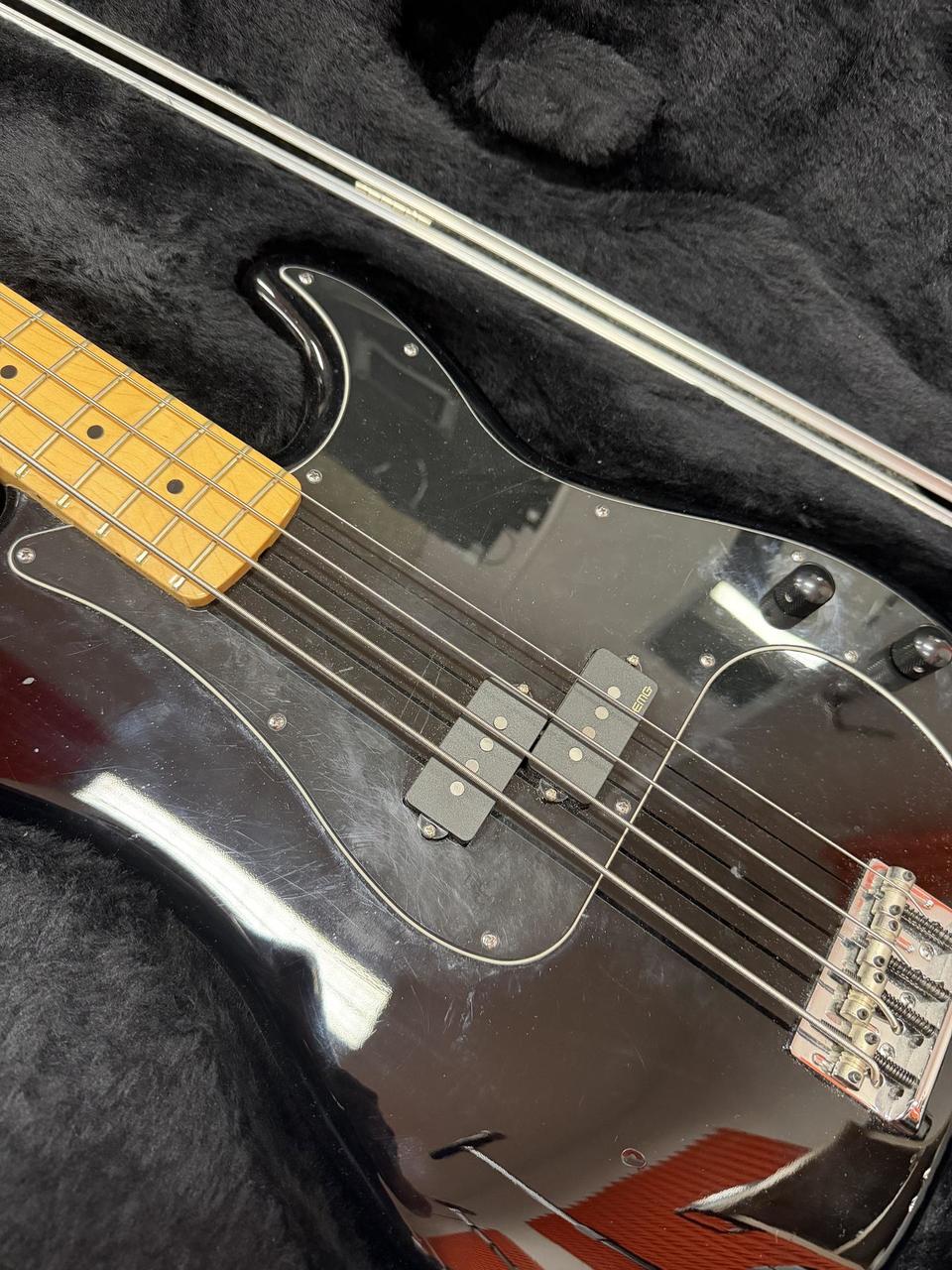Je to absolutní klasika Precision, tedy tělo olše, krk javor. Vyměnil jsem pickguard a knoby za černou variantu. Snímače jsou EMG Geezer Butler PHZ Black, elektronika taktéž EMG. Vše pasivní. Skvělý zvuk, typický pro Fender Precision. Struny skrz tělo nebo ne, jak chcete vy. Kobylka umožňuje oboje. Nástroj je seřízený na D ladění a připravený hrát. Originální kufr Fender je samozřejmě v ceně. Pošlu DPD, osobně Tachov, Plzeň, po dohodě Praha. Dotazy rád zodpovím. Výměny za Gibson Les Paul. Ale raději prodej.