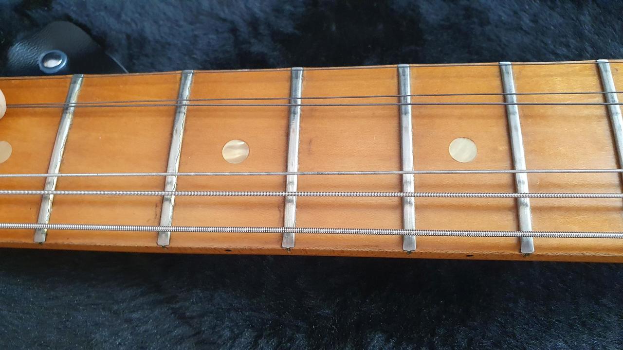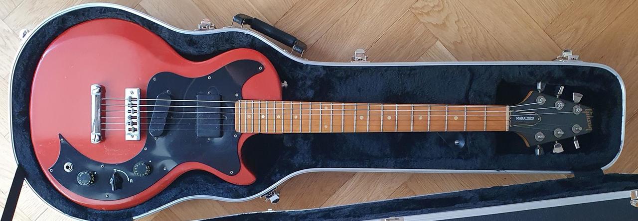 Ze zdravotních důvodů prodávám ze svojí sbírky raritku, která potěší sběratelsky i hudebně - Gibson Marauder z roku 1981 (výrobní číslo 80711715), jde tedy o jeden z posledních Marauderů z pozdější dovýroby, které byly v Nashvillu vyrobené (většina byla vyráběná mezi roky 74 a 79), navíc ve vzácné barvě ember red (většinou byly Maraudery v přírodním provedení, ve vínově červené nebo ebenové).
