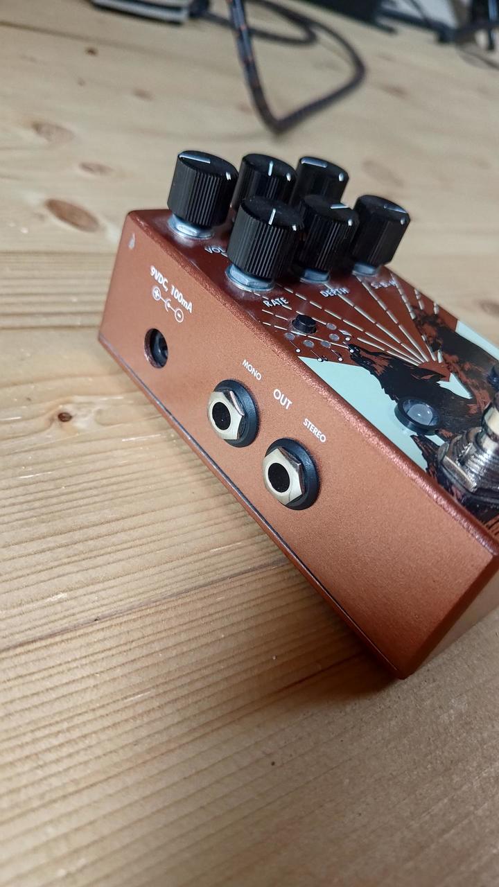 Stereo I/O: Ideální pro komplexní pedalboardy (skvěle si rozumí se splittery a stereo delayi/reverby). Harmonic & Standard mód: Od klasického vintage pulzování až po husté, fázovité harmonické tremolo. 5 vlnových průběhů: Sine, Square, Sawtooth, Lumpy a Random (S-H). Tap Tempo & Rozšířené ovládání: Možnost připojení externího expression pedálu. Momentary funkce: Podržením bypassu můžete efekt aktivovat jen pro určitou frázi. Pedál je ve výborném stavu. Používán pouze doma v čistém prostředí. Na spodní straně je nalepen kvalitní suchý zip, v případě zájmu můžu šetrně odstranit. Zásilkovna: Po platbě předem (nebo záloze na dobírku) (+ 90 Kč)