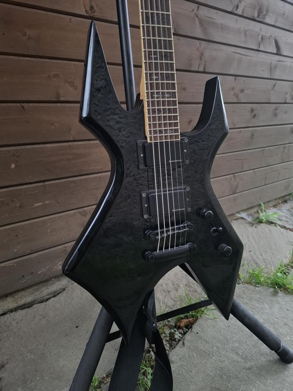 Prodám složenou kytaru typu Warlock. Tělo je Harley Benton, krk z Schecter Devil Fr. Snímače Duncan Designed pasivní.