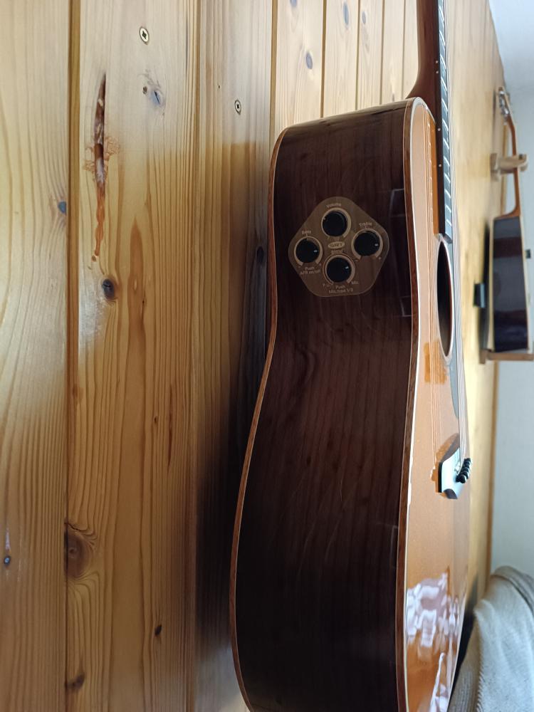 Prodám kytaru koupenou v dubnu 2025 v Brně v Kytary. cz. ,v záruce a servisovaná. Přední deska smrk, luby a zadní deska palisandr. Jemné známky opotřebení.