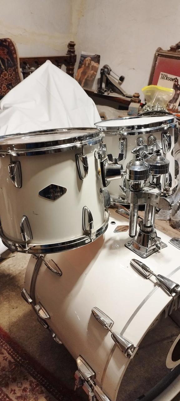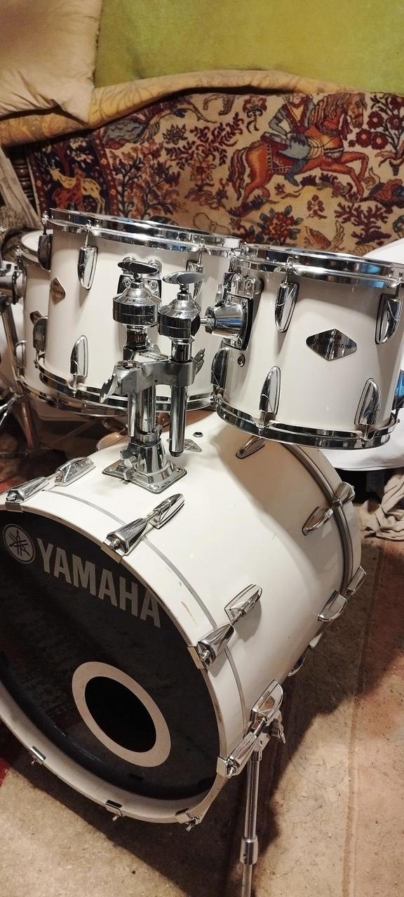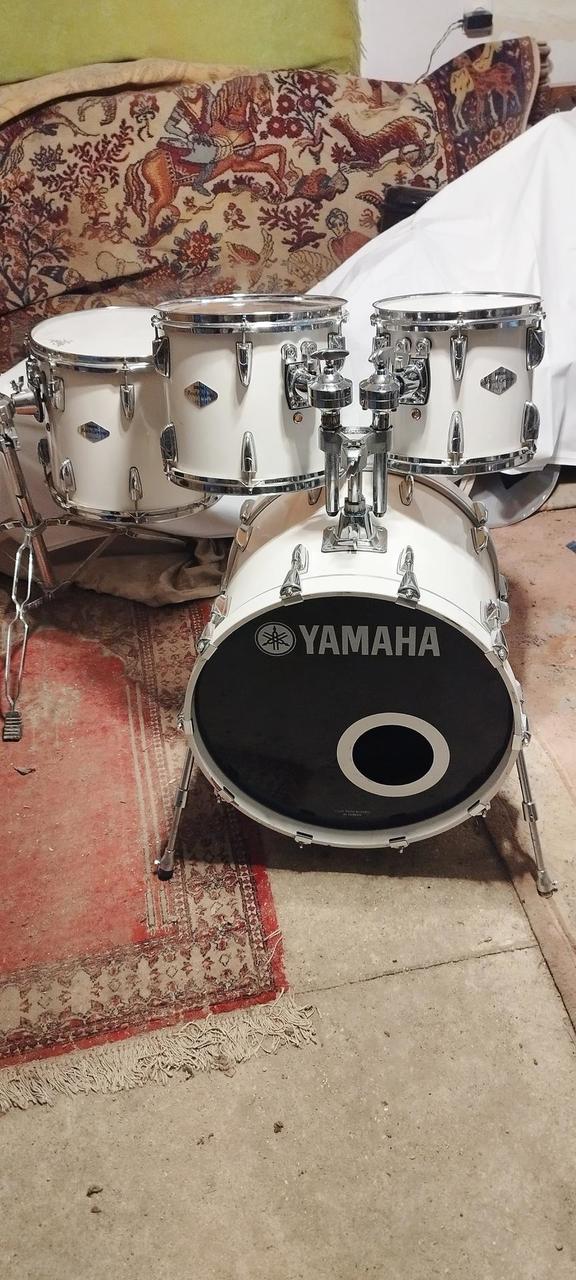 Na prodej profesionální bicí souprava Yamaha Beech Custom – japonská výroba z nejvyšší řady, ceněná pro teplý, muzikální zvuk bukových korpusů.Bílá barva- lak.