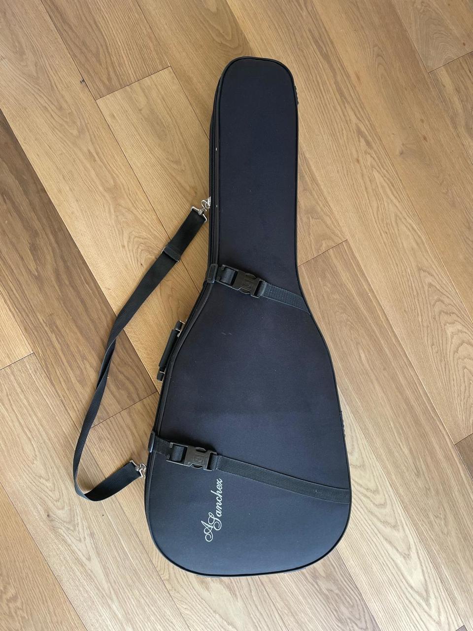 Kytara je plně funkční, bez prasklin, minimální známky používání. Byla hraná pouze doma. Součástí je pevný polstrovaný kufr (viz foto).
