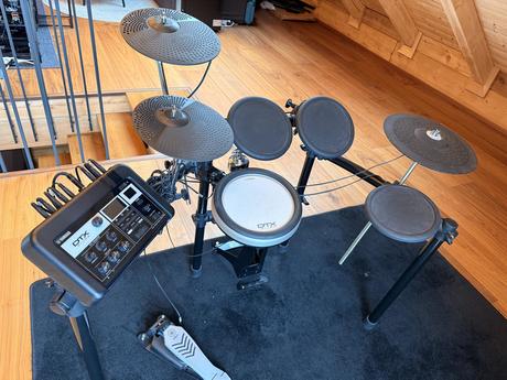 U rytmičáku je viditelné opotřebení TCS povrchu (viz foto). Opotřebení je pouze kosmetické, bez vlivu na citlivost nebo funkčnost. U crashe byl měněn kabel, původní občas zlobil. Po výměně funguje bez problémů. ⸻ Výbava: • DTX-PRO modul – 30 + zvukových samplů • 3-zónový snare • 1-zónové tomy • 3-zónový ride (bell / bow / edge) Vhodné na domácí hraní nebo i do studia. Možnost vyzkoušení po domluvě. Prodávám z důvodu nevyužívání