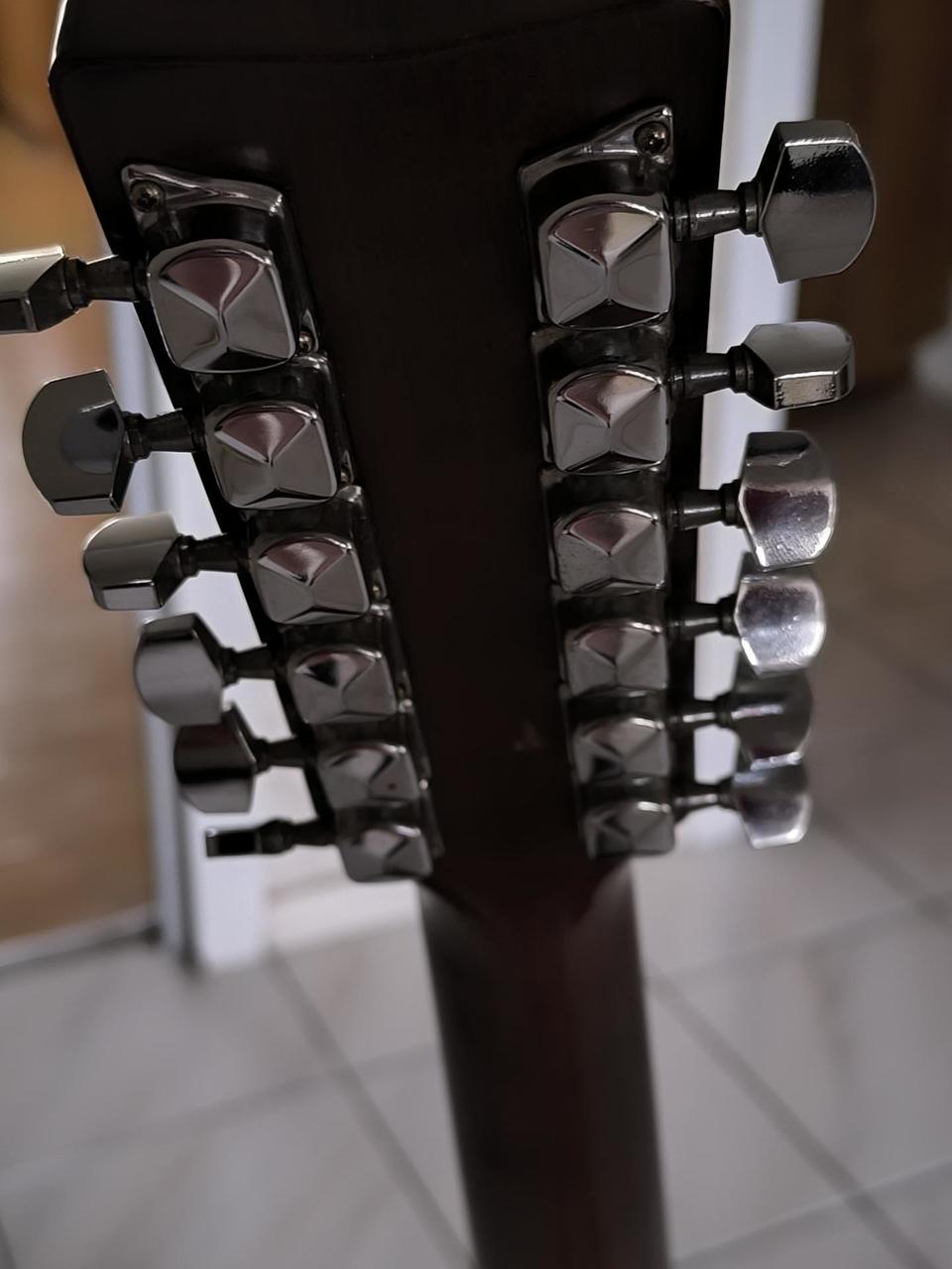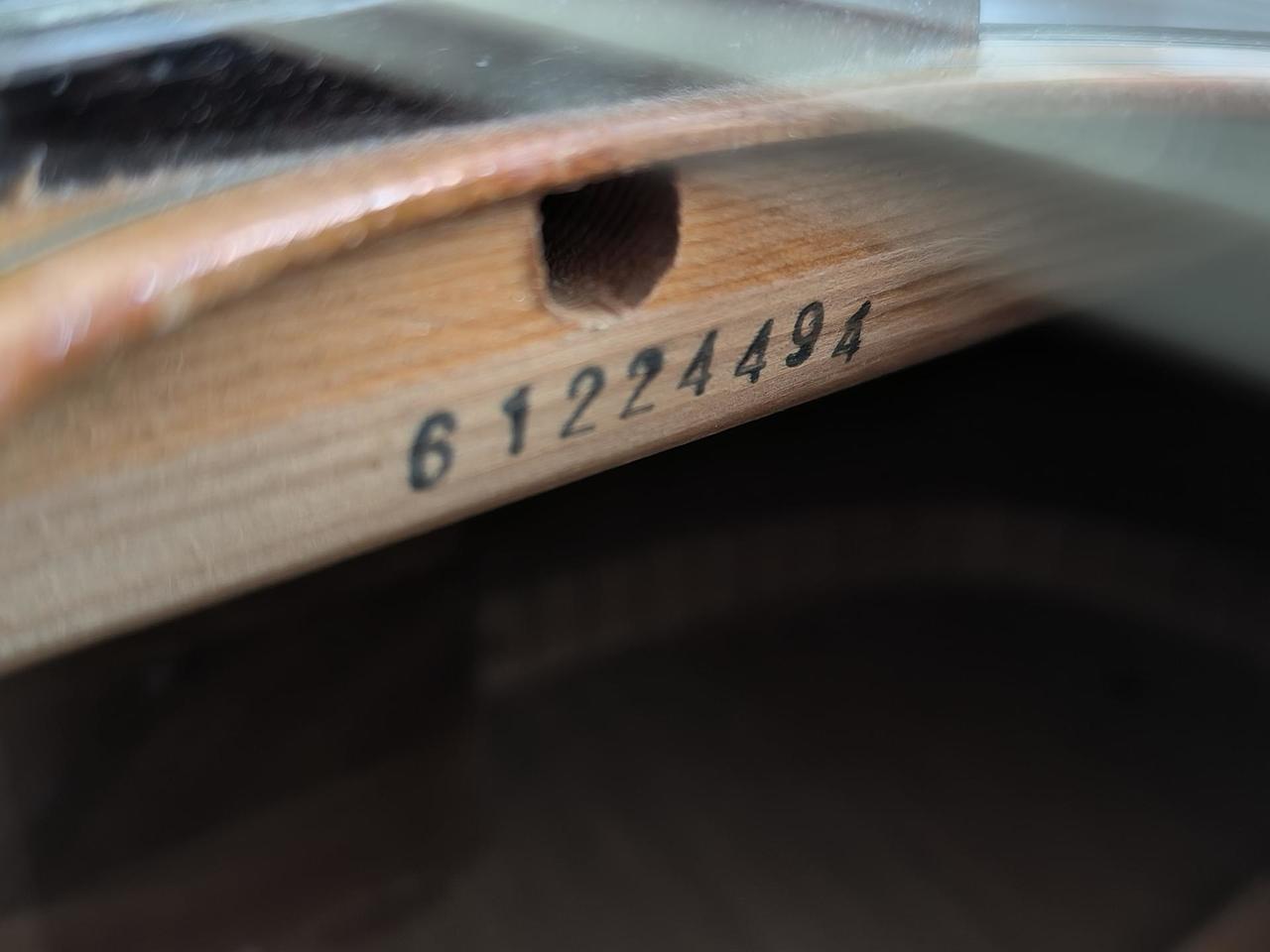 Přední deska: Smrk (Spruce). Hmatník a kobylka: Palisandr (Rosewood). Šířka nultého pražce je 46mm