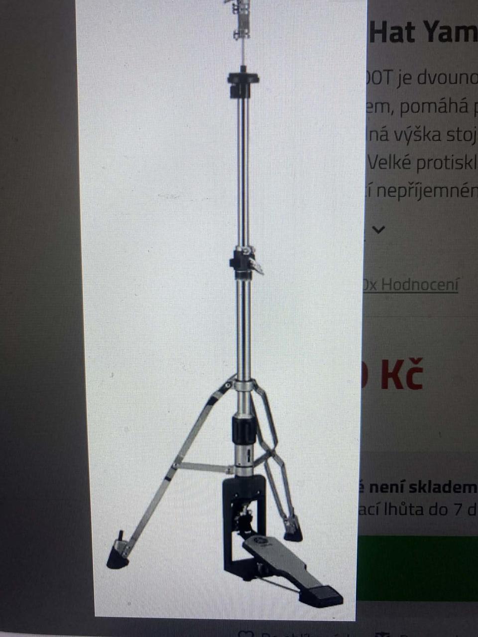 Prodám v pěkném stavu hi hat stojan. HS-1200T je dvounohý Hi-Hat stojan s novým designem. Má nastavení pro napnutí pružiny a výšku stupačky. Nové sedlo na činely má samosvorné nastavení úhlu a oboustrannou plsť/gumovou podložku. HS-1200T se dodává s táhly dvou různých délek, takže si můžete nastavit výšku činelu tak, aby vyhovovala vašemu stylu. Přepracována byla i blokovací spojka se silnějšími pojistnými kroužky