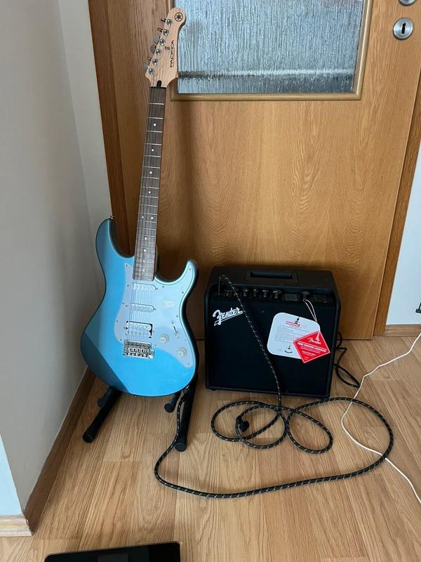 Obsah sady: Kytara: Yamaha Pacifica 112J MKII (ideální poměr cena/kvalita) Zesilovač: Fender Mustang LT25 (skvělý pro domácí/amatérské použití) Kabel Fender Deluxe Series: 3metrový kabel. Jedna strana je ve tvaru G, druhá je rovná (pro ideální pohodlí při hře). Kabel je spolehlivý, silný a dobře spletený. Běžný stojan na kytaru. Nic z toho nebylo příliš používáno (maximálně 5-7krát). Používáno pouze doma, žádné stěhování. Přijďte se přesvědčit sami. Cena v obchodě za podobnou sadu je přibližně 12 000 Kč.