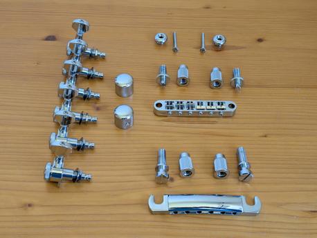 Prodám kompletní sadu kytarového hardwaru v chromovém provedení demontované z nové kytary BaCH BGE BK (Explorer).