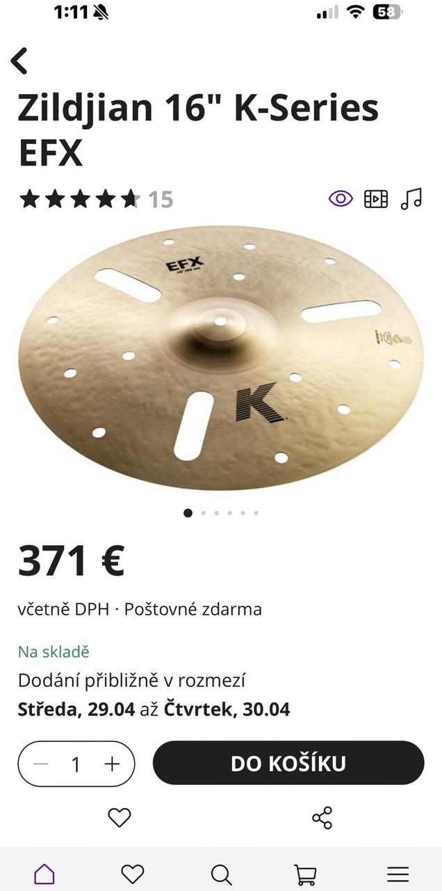 predám efektový činel “Zildjain K” EFX 16”pekný stav
