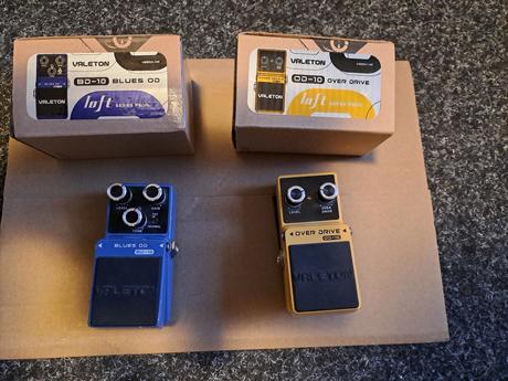 Valeton loft series OD-10 a BD-10 (1200,-). Inspirovány krabičkami Boss - OD-1 a BD-2. Green Martian od fy Movall. Jedná se o krabičku inspirovanou zvukem tube screamer, má 4 mody - TS, TS+, TS HOT a TS TURBO. Plexibox od firmy Gokko. Jedná se o variabilní marshallové zkreslení s pestrou škálou nastavení. Vloženo 18.4.2026 20:55 pod č.753607