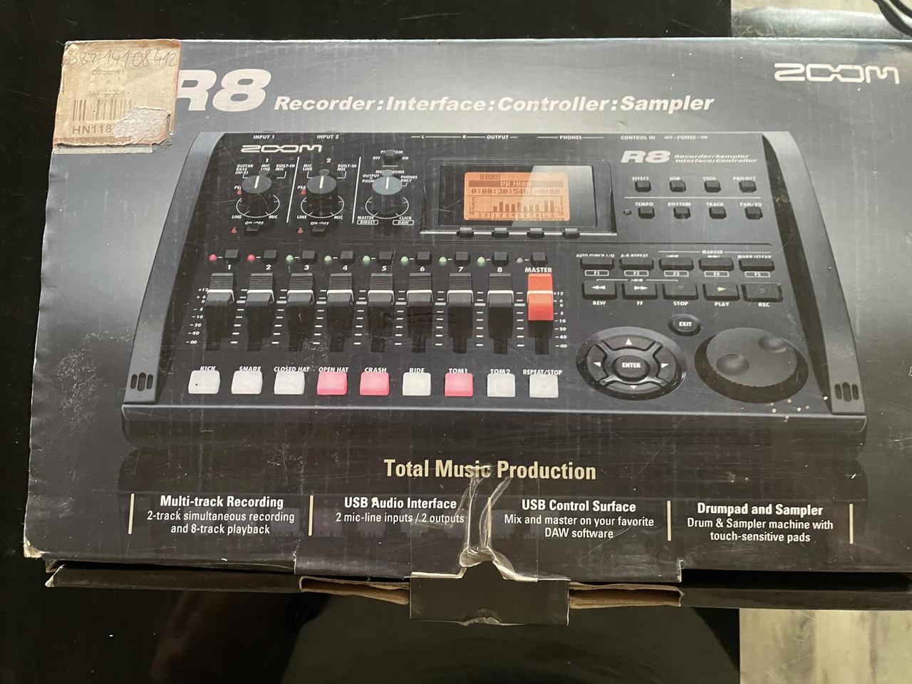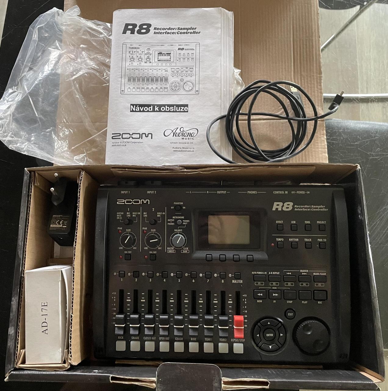 Zoom R8 kombinuje více audio produkčních nástrojů v jednom kompaktním zařízení. Kromě toho, že je 8-pásmový rekordér, je to sampler pro pad a rytmický stroj a může sloužit i jako řídicí plocha DAW a počítačové audio rozhraní. Pokročilé funkce, jako jsou vestavěné stereo kondenzátorové mikrofony, vstupy s duálním mikrofonem / linkou / přístrojovou úrovní, efekty DSP na desce a chromatický tuner doplňují obraz, který dělá z R8 skvělou volbu. 8-stopové přehrávání, 2-stopové simultánní nahrávání Vestavěné stereo kondenzátorové mikrofony Záznamy přímo na SD a SDHC karty do 32 GB Zaznamenává 16bitové / 24bitové, 44,1 kHz / 48 kHz mono a stereo soubory WAV Vstupy s dvojitým mikrofonem / linkou / přístrojovou úrovní na kombinovaných konektorech XLR / TRS Fantomové napájení +24 a + 48V Dvojité vyvážené výstupní konektory TRS Výstup pro sluchátka se speciálním ovládáním hlasitosti Ovládací vstup pro nožní spínač start / stop / převíjení vzad, vpichování / vypínání a náplast nahoru / dolů Vestavěný metronom a chromatický tuner Více než 140 efektů send-return a insert DSP, včetně modelů amp / preamp a mastering algoritmů Uživatelská editace parametrů efektů, s 370 patchovými paměti pro ukládání Nezávislá úroveň, pánev a EQ pro každou stopu Flexibilní overdubbing a ruční i automatické punch-in / out Přehrání smyčky s přiblížením tvaru vlny a uživatelem definovanými body start / stop Variabilní rychlost přehrávání od 50% do 150%, bez ovlivnění výšky tónu Až 100 značek na záznam Funkce inverzní fáze fáze Oříznutí a rozdělení souborů 8-hlasový vzorkovač s nastavitelnou citlivostí Rytmický stroj se 160 zvuky bubnu a perkuse Úložiště pro 100 uživatelsky vytvořených rytmických vzorů až do 100 barů Ruční přehrávání nebo krokování rytmických vzorů s nastavitelnou kvantizací Slučkový audio sekvencer integruje rekordér, rytmický stroj a sampler